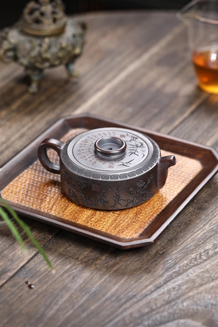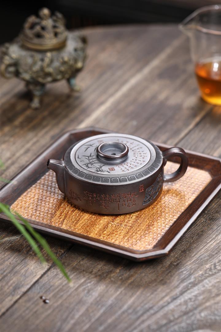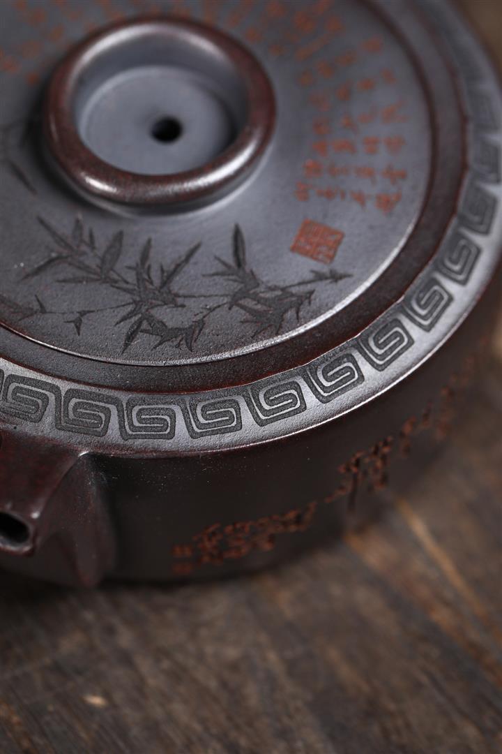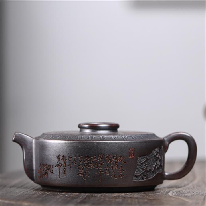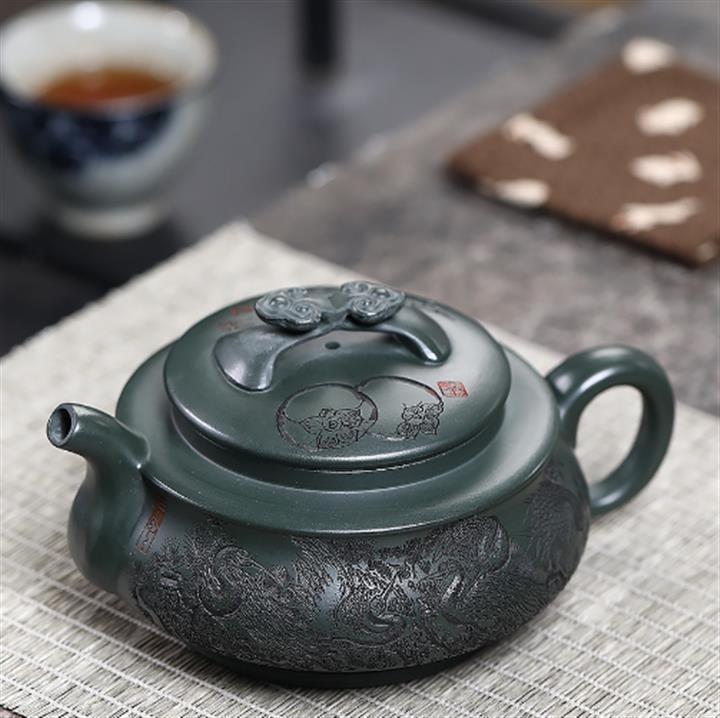 210cc原礦綠泥百福納財刻繪茶壺POT8363