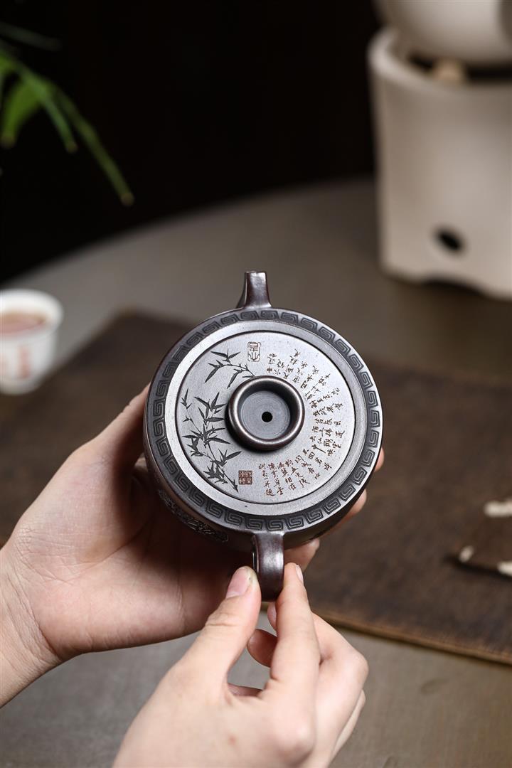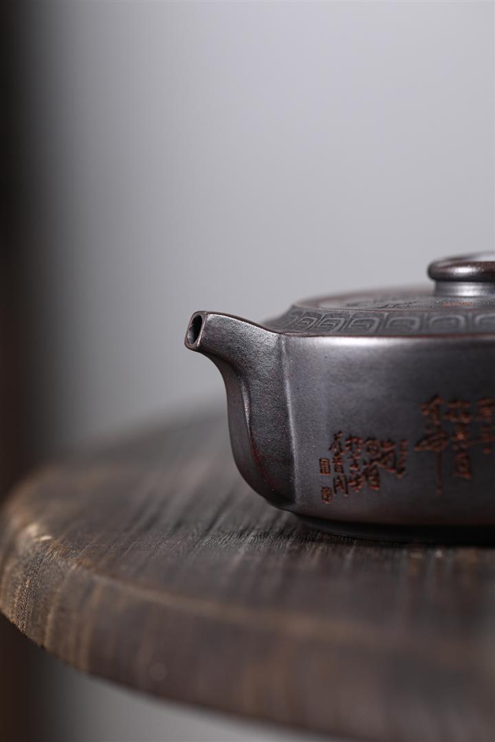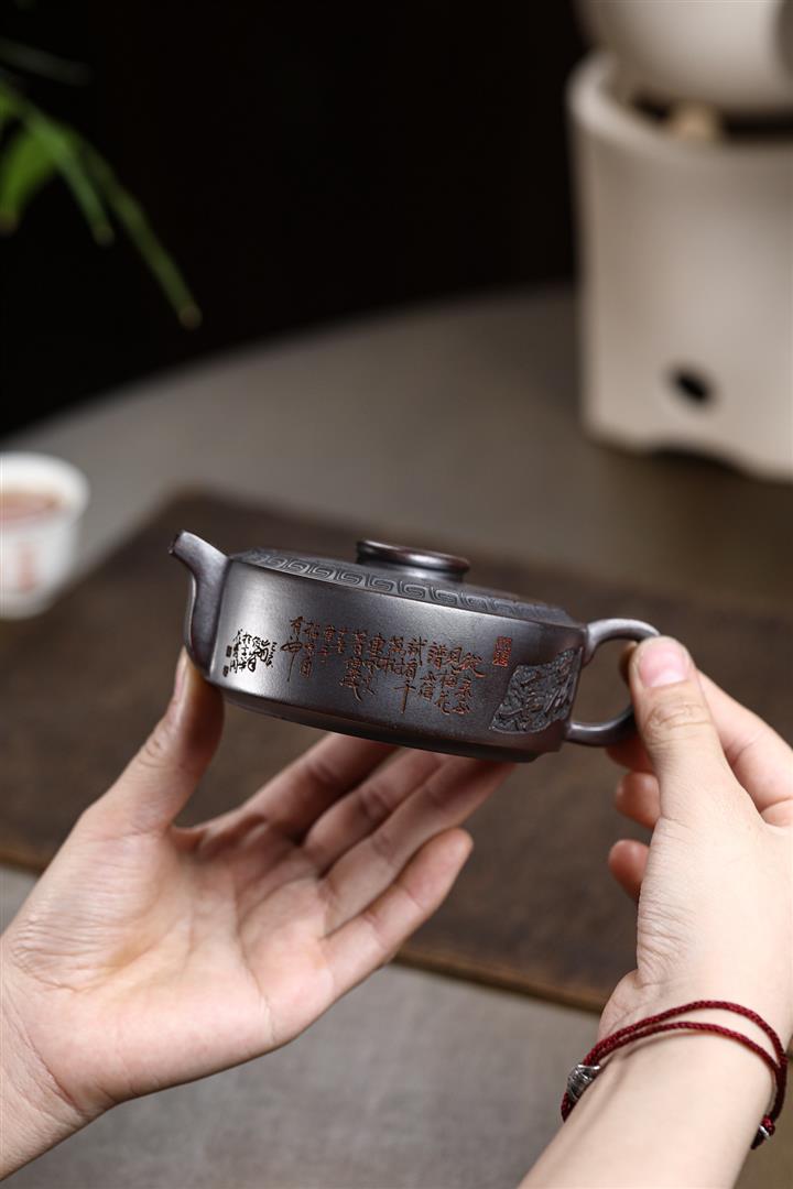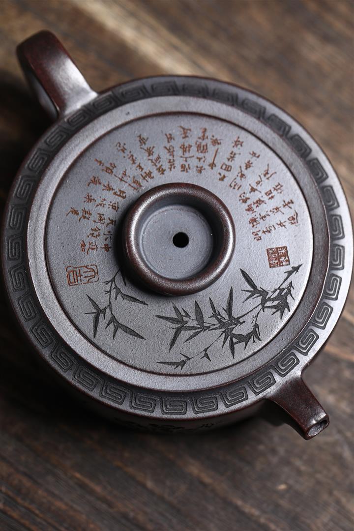 210cc原礦綠泥百福納財刻繪茶壺POT8363