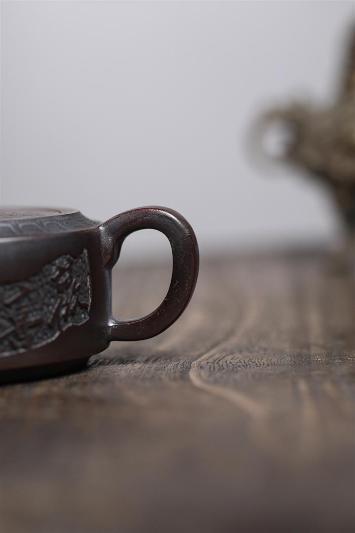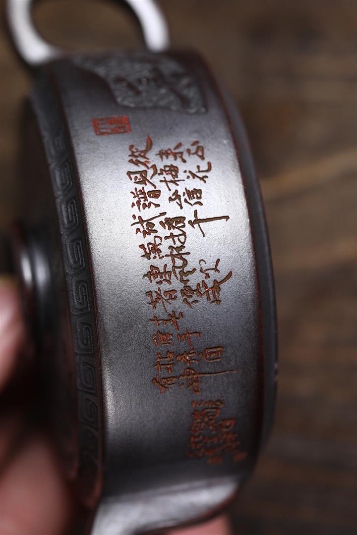 300cc原礦古紅泥周盤魚化龍刻繪茶壺POT8362