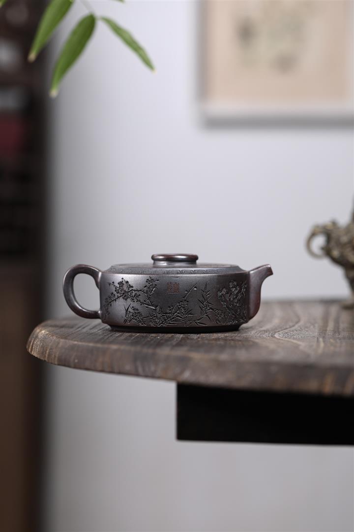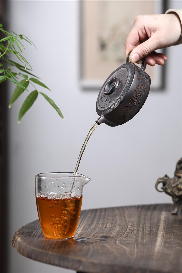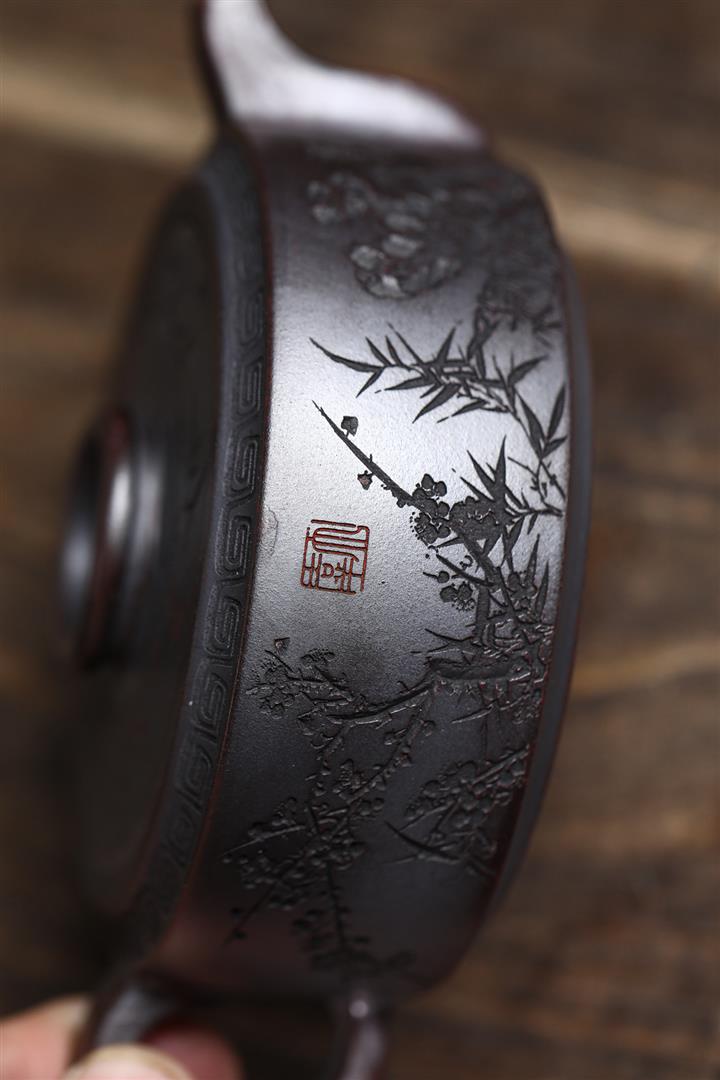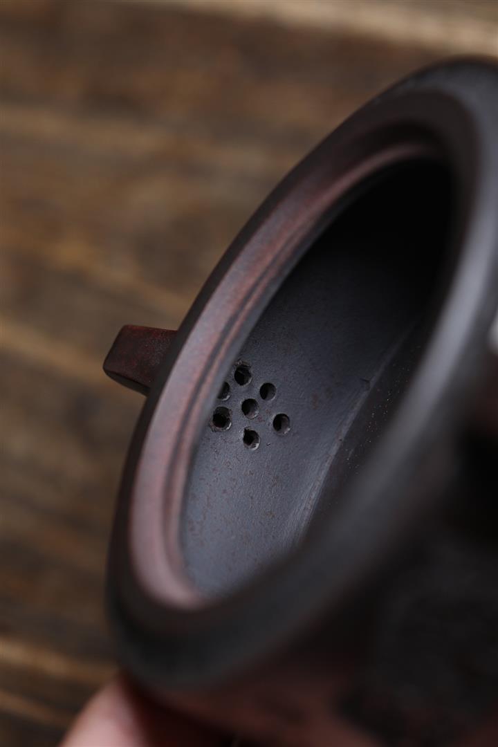 【泥料特點】砂土氣重,似淳實農民,日久使用,漸露鋒芒,養成變化,溫潤莊重。紫砂是壹種雙重氣孔結構的多孔性材質,氣孔微細,密度高。用紫砂壺沏茶,不失原味,且香不渙散,得茶之真香真味。紫砂使用越久,壺身色澤越發光亮照人,氣韻溫雅。紫砂壺長久使用器身會因撫摸擦拭,變得越發溫潤光澤。