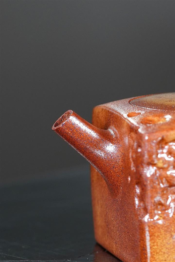 原礦高溫柴燒沈香泥牡丹尊方茶壺POT6634