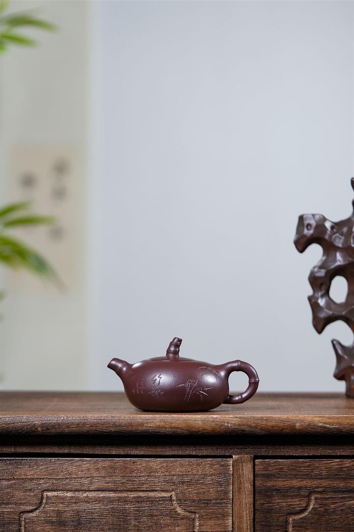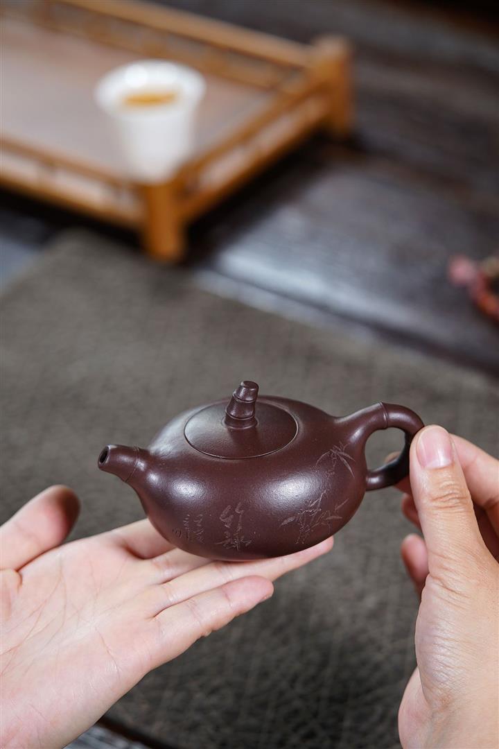 【作品介紹】此款壺形線條流暢,壺把,壺嘴,壺身壹氣呵成栩栩如生,是收藏把玩的好壺,泥料色澤古樸典雅,日久使用,漸露鋒芒,養成變化快,溫潤莊重,用其泡茶,使用的年代久,壺身就溫潤,泡出來的茶湯也就醇郁芳馨。