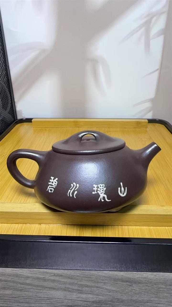 降坡泥手工刻字蒼晨月夕紫砂壺POT6485