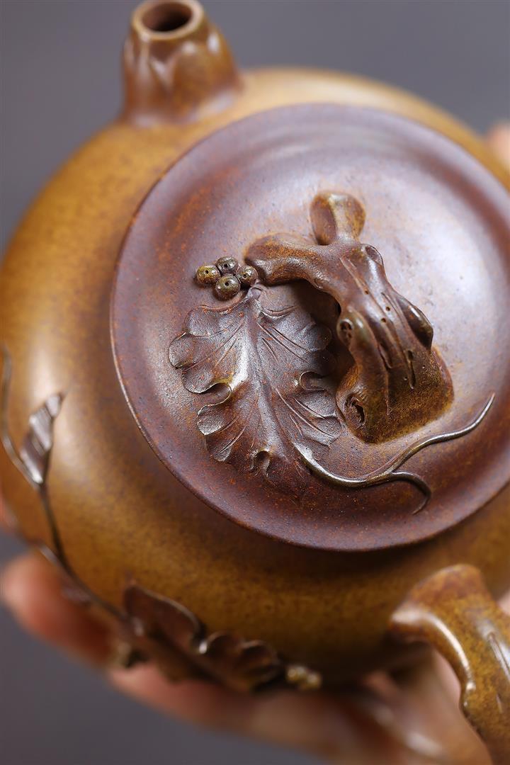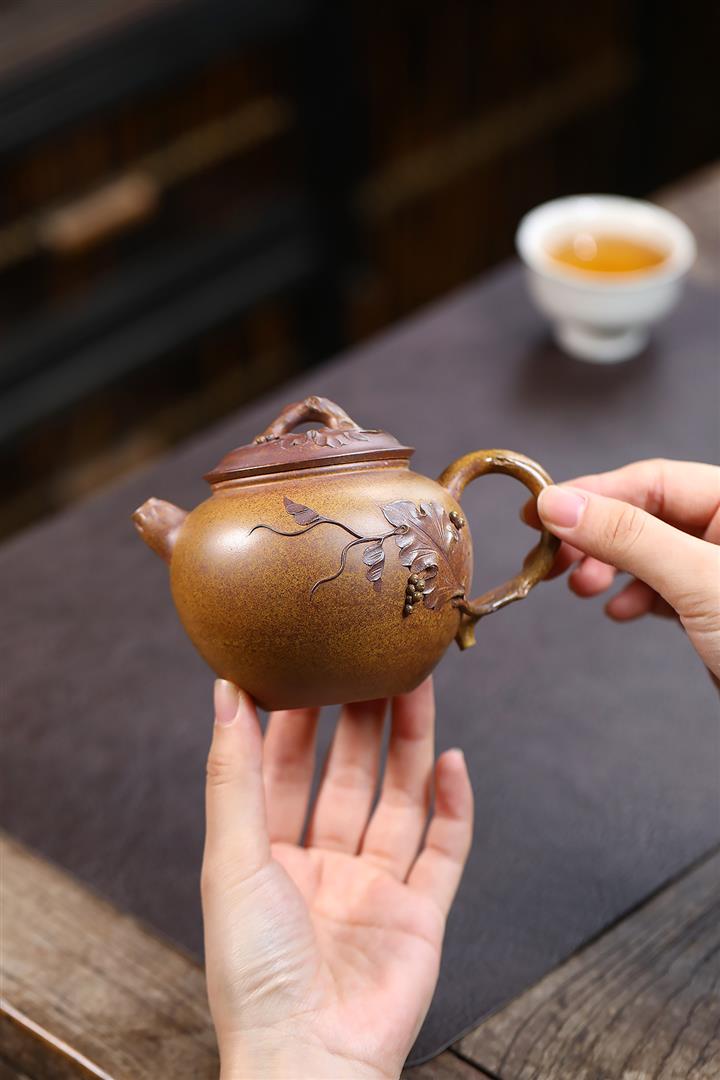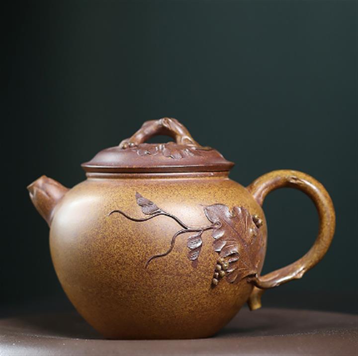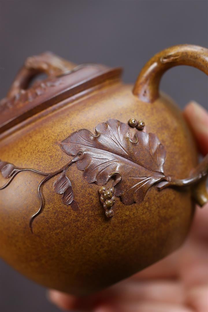 260cc原礦龍骨金砂泥繪葡萄容天茶壺POT8973