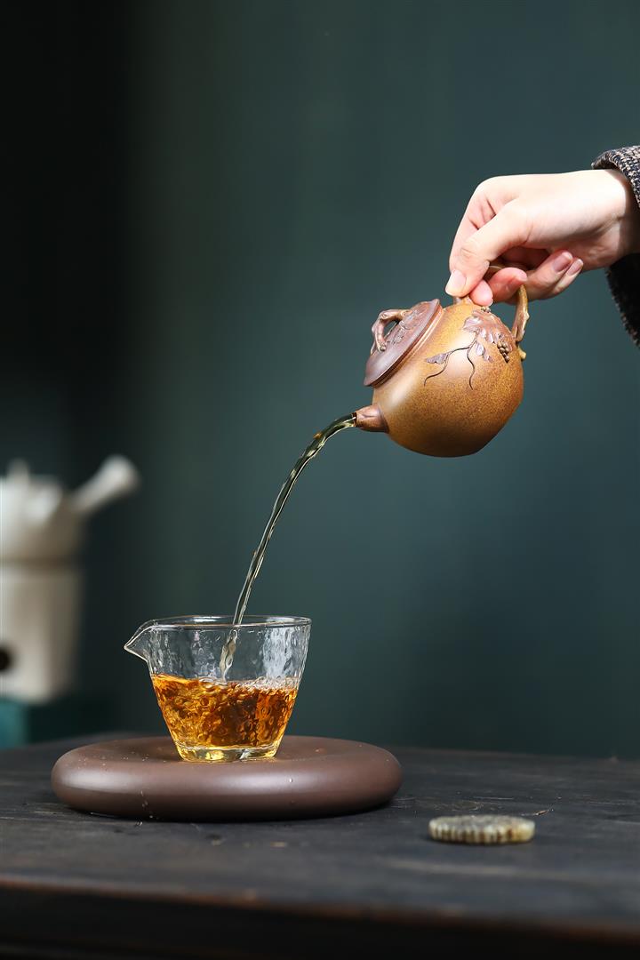 【泥料特點】砂土氣重,似淳實農民,日久使用,漸露鋒芒,養成變化,溫潤莊重。紫砂是壹種雙重氣孔結構的多孔性材質,氣孔微細,密度高。用紫砂壺沏茶,不失原味,且香不渙散,得茶之真香真味。紫砂使用越久,壺身色澤越發光亮照人,氣韻溫雅。紫砂壺長久使用器身會因撫摸擦拭,變得越發溫潤光澤。