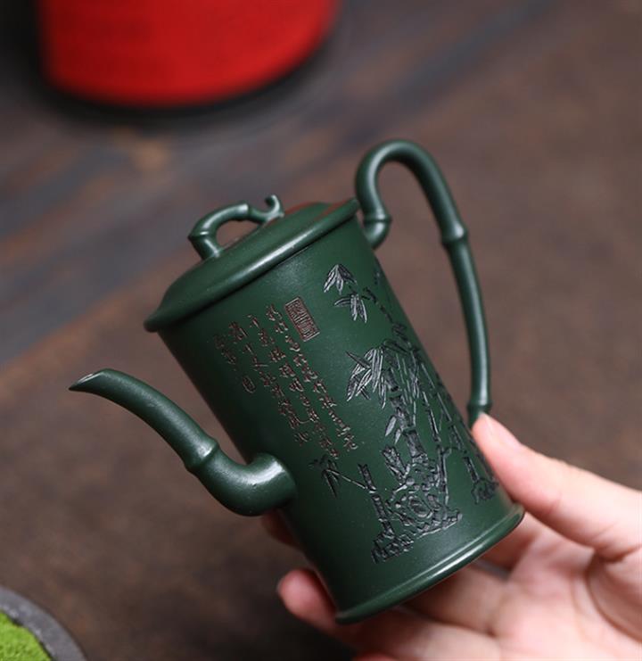 150cc原礦民國綠泥節節高升泡茶壺POT8992