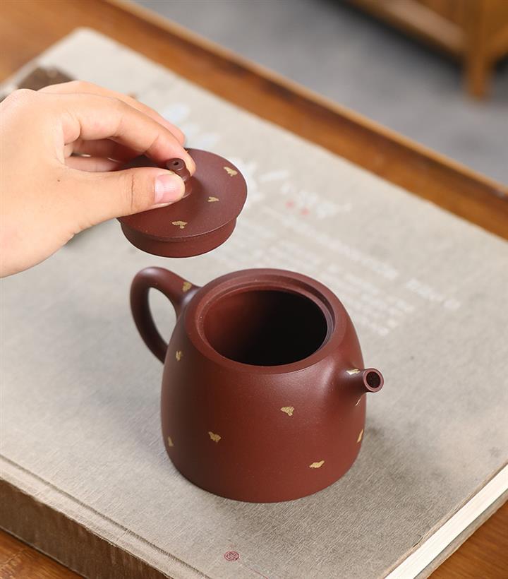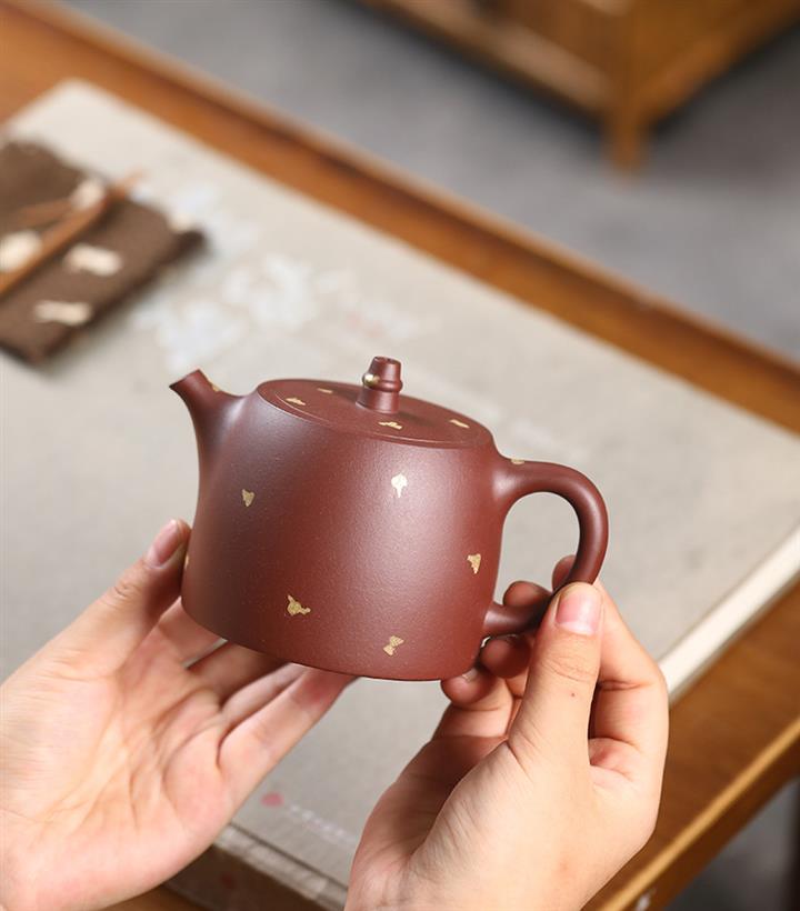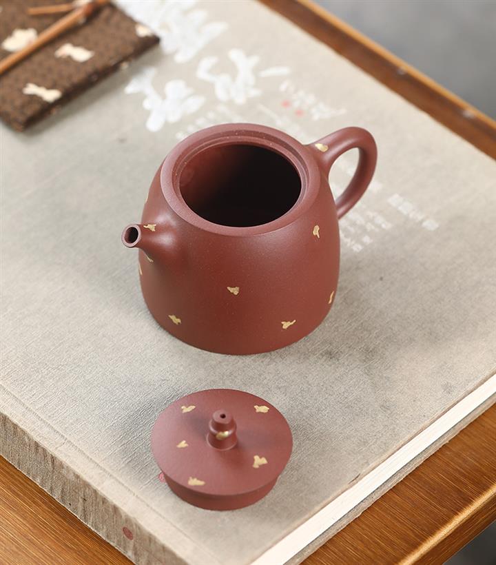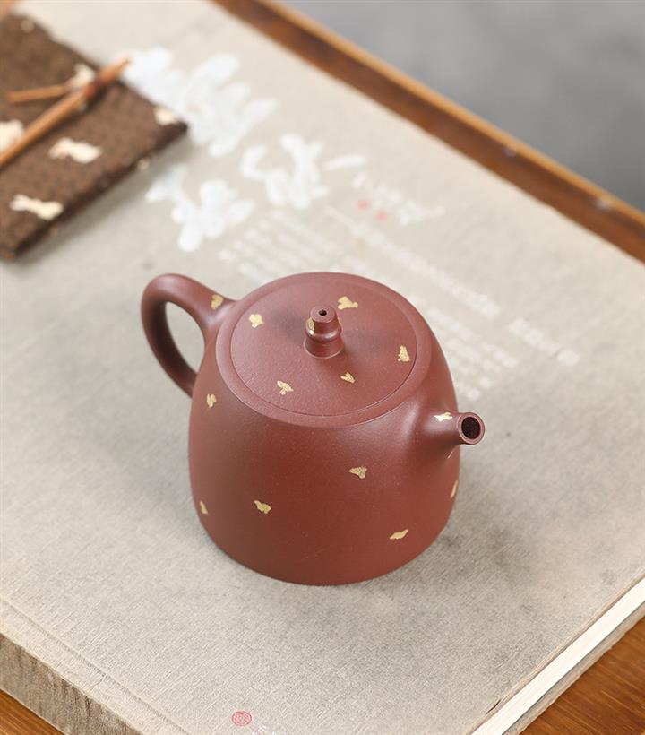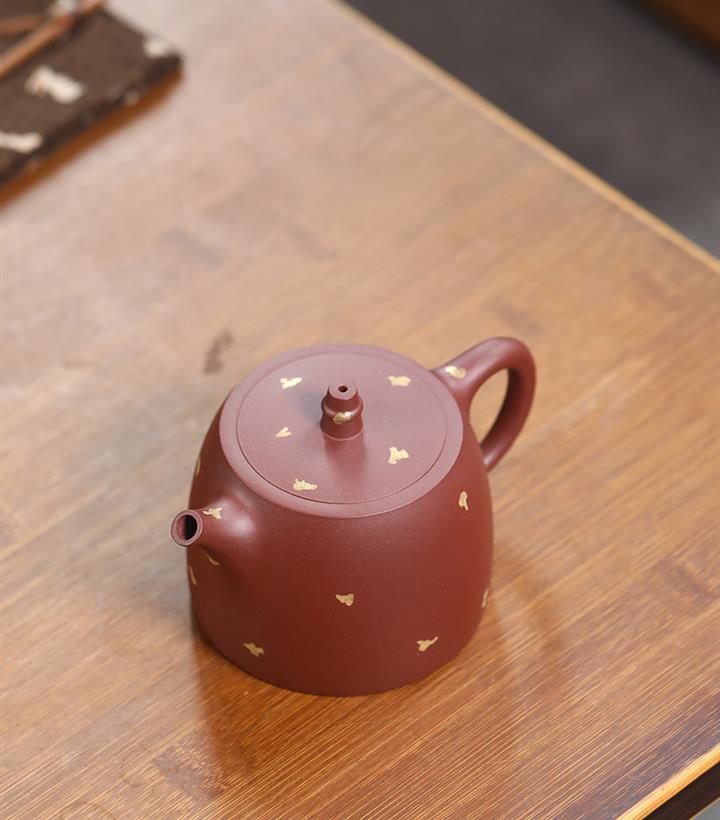 大紅袍還原燒手工描金美人肩紫砂壺POT6