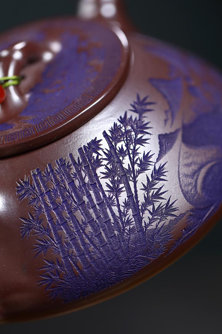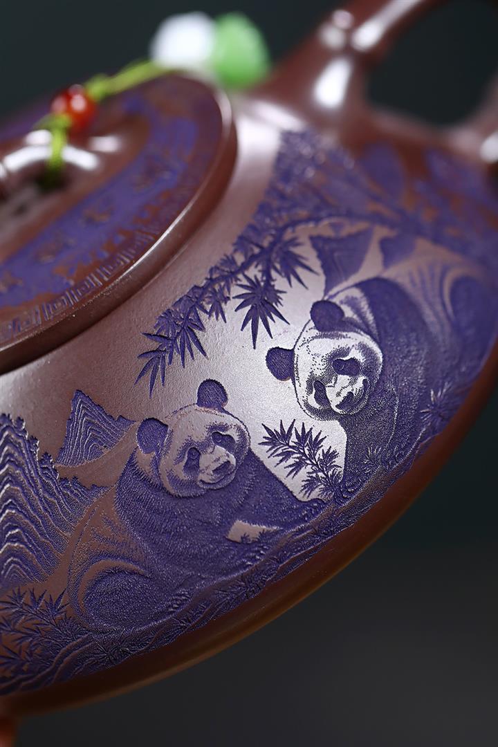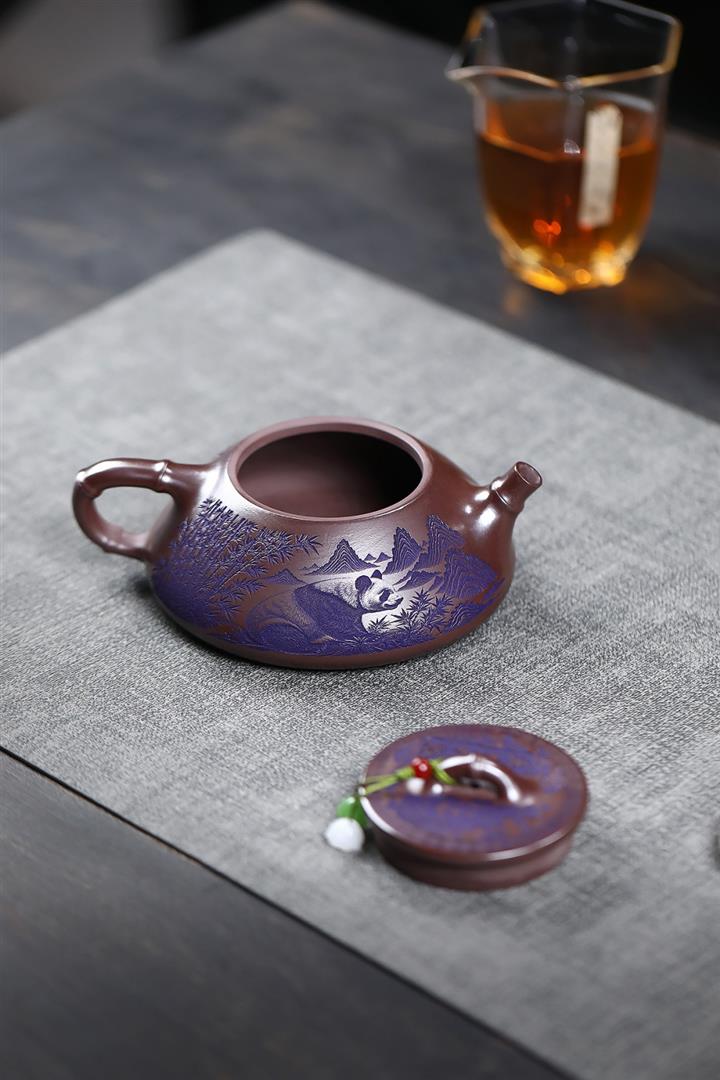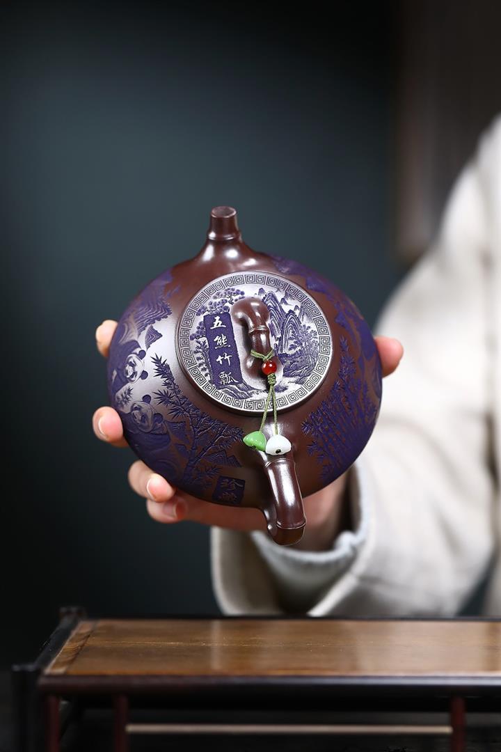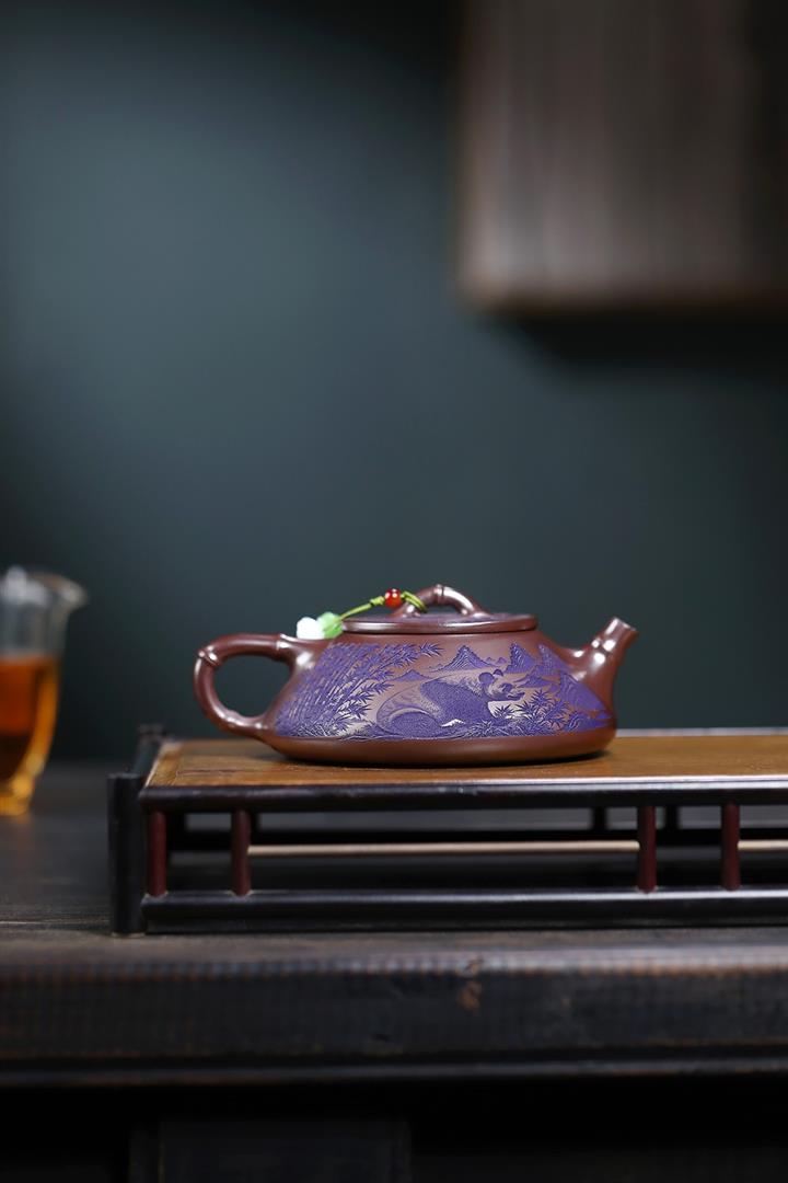 原礦綠泥琢砂竹報平安泡茶壺POT7879