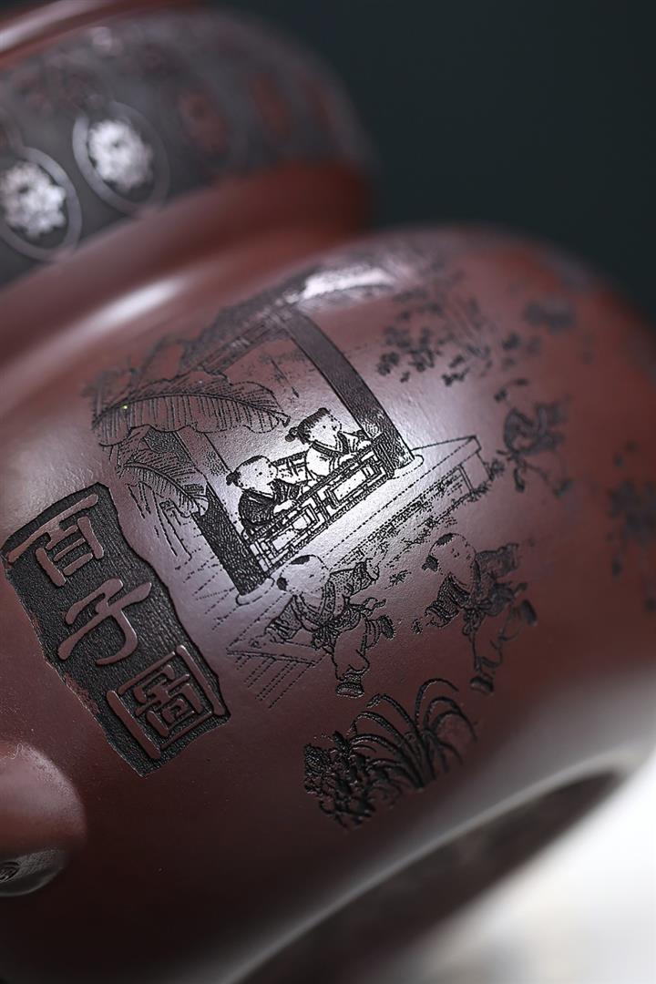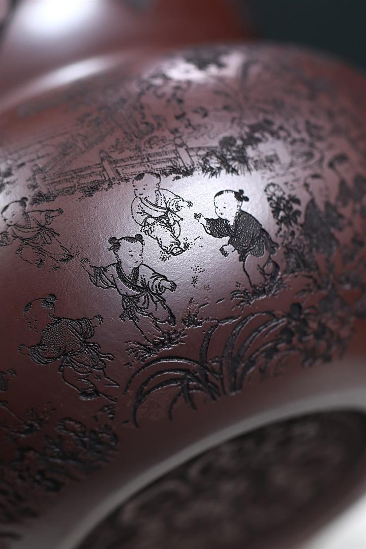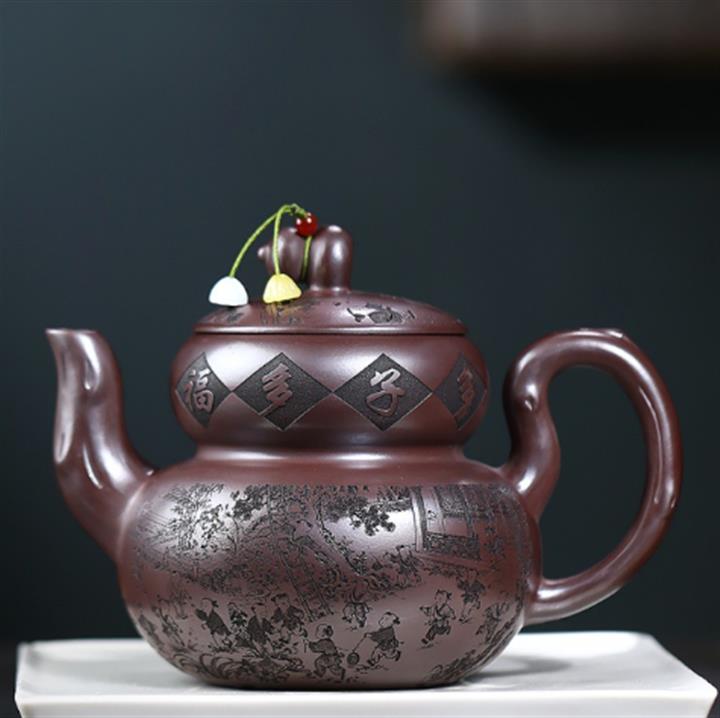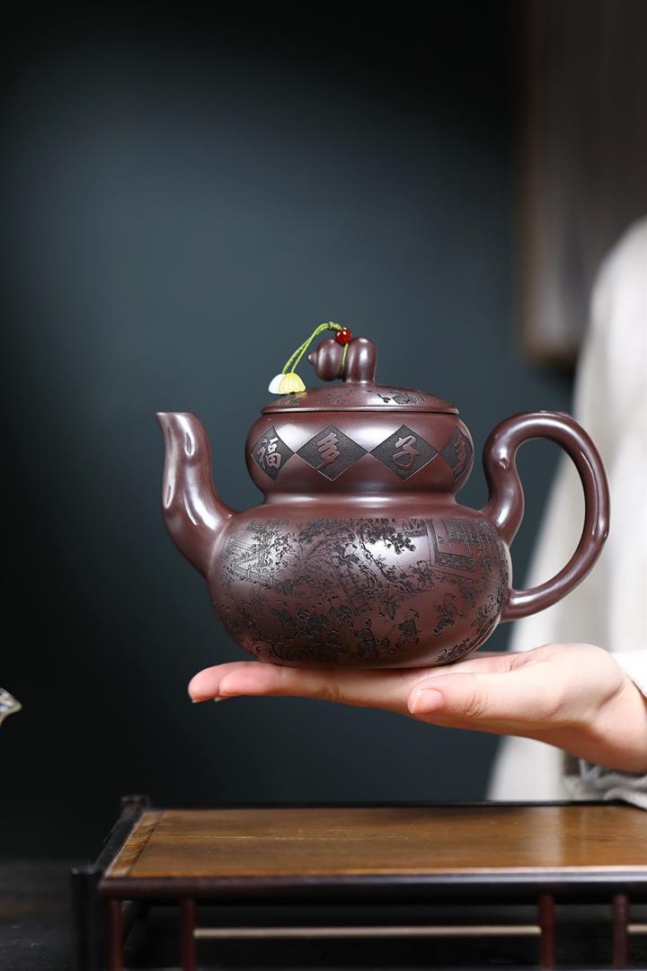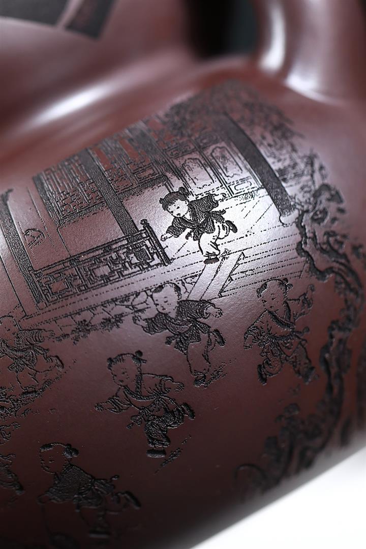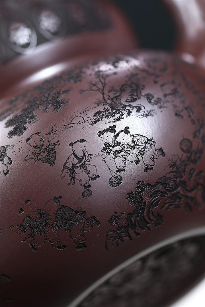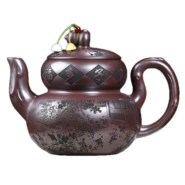 650cc原礦石紅泥滿刻百子納福葫蘆POT9001