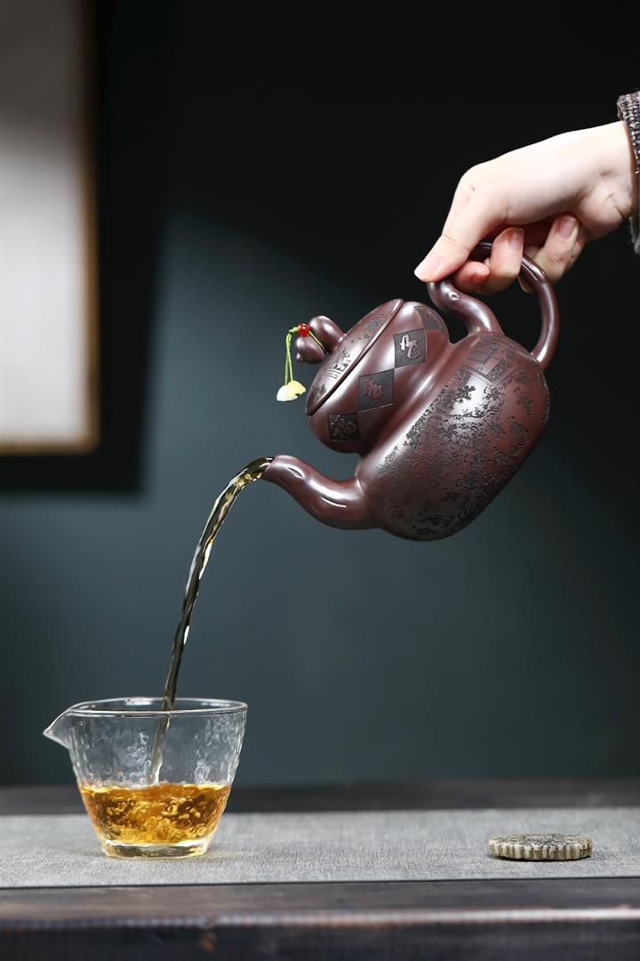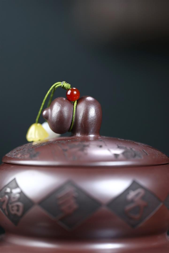 【泥料特點】砂土氣重,似淳實農民,日久使用,漸露鋒芒,養成變化,溫潤莊重。紫砂是壹種雙重氣孔結構的多孔性材質,氣孔微細,密度高。用紫砂壺沏茶,不失原味,且香不渙散,得茶之真香真味。紫砂使用越久,壺身色澤越發光亮照人,氣韻溫雅。紫砂壺長久使用器身會因撫摸擦拭,變得越發溫潤光澤。