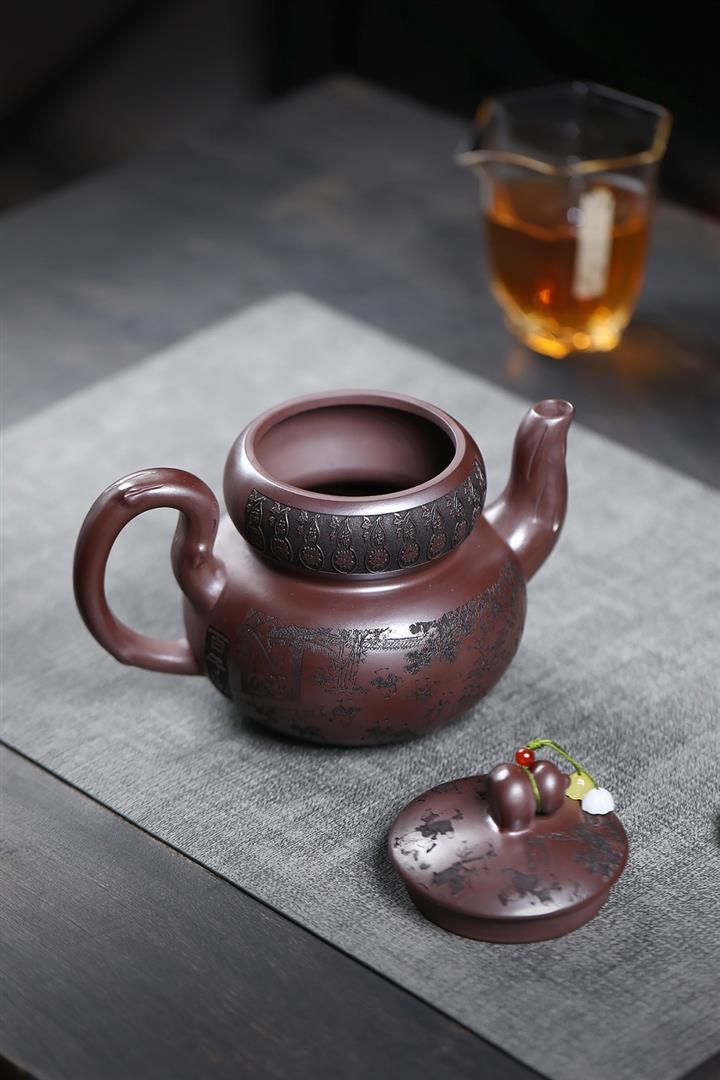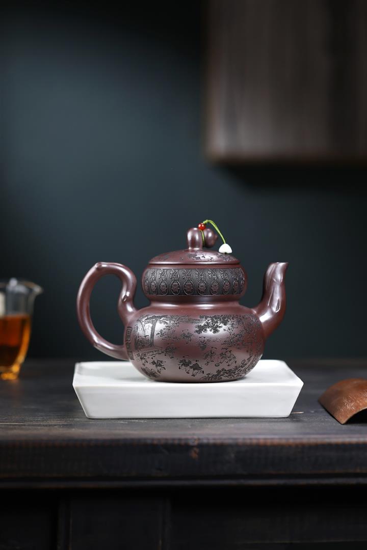 原礦紫泥茄瓜堆繪茶壺POT8592