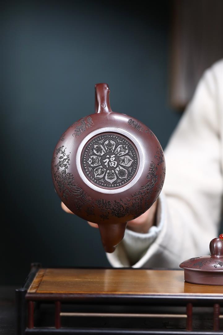 240cc原礦龍血砂四方祥龍獻瑞茶壺POT8601