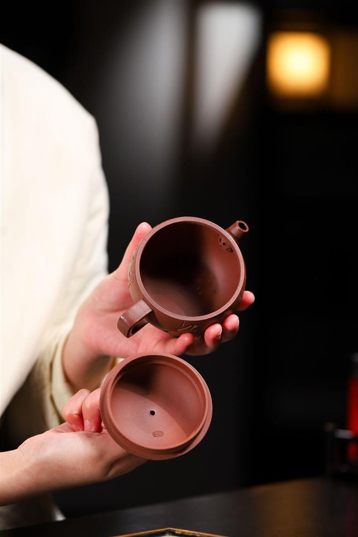 【作品介紹】此款壺形線條流暢,壺把,壺嘴,壺身壹氣呵成栩栩如生,是收藏把玩的好壺,泥料色澤古樸典雅,日久使用,漸露鋒芒,養成變化快,溫潤莊重,用其泡茶,使用的年代久,壺身就溫潤,泡出來的茶湯也就醇郁芳馨。