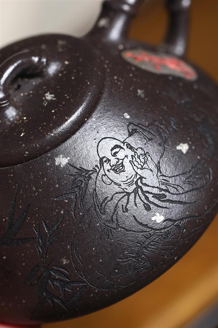 450cc原礦紫泥滿刻大德鐘茶壺POT8290