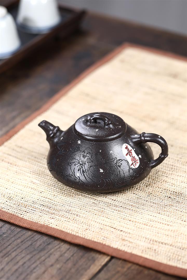 300cc原礦玄鐵石黃黑料報春茶壺POT8297
