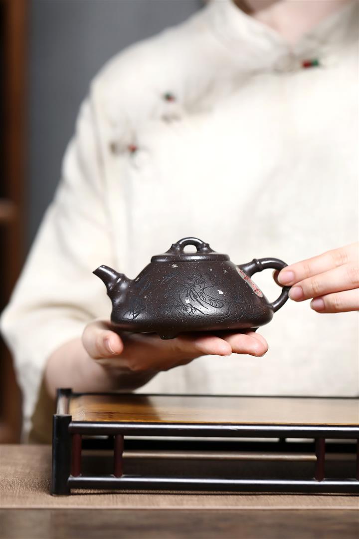 【作品介紹】此款壺形線條流暢,壺把,壺嘴,壺身壹氣呵成栩栩如生,是收藏把玩的好壺,泥料色澤古樸典雅,日久使用,漸露鋒芒,養成變化快,溫潤莊重,用其泡茶,使用的年代久,壺身就溫潤,泡出來的茶湯也就醇郁芳馨。