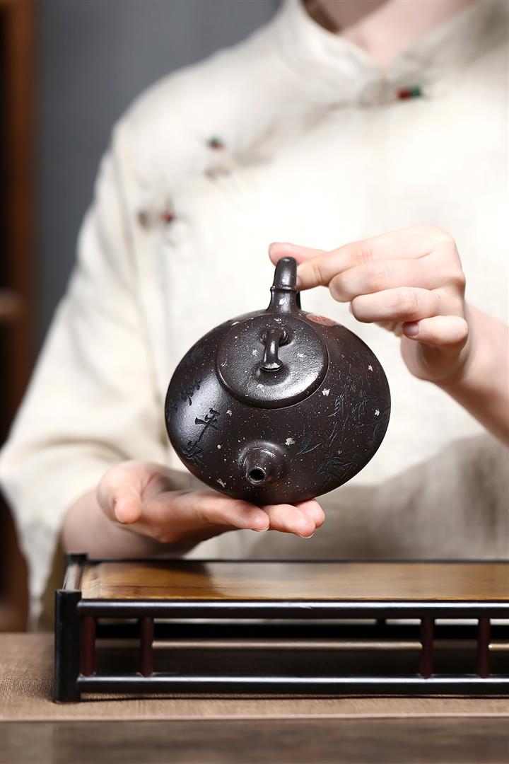 300cc原礦玄鐵黑料報春茶壺POT8295