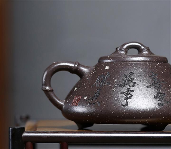300cc龍骨金砂高溫柴燒四方竹段茶壺POT8292