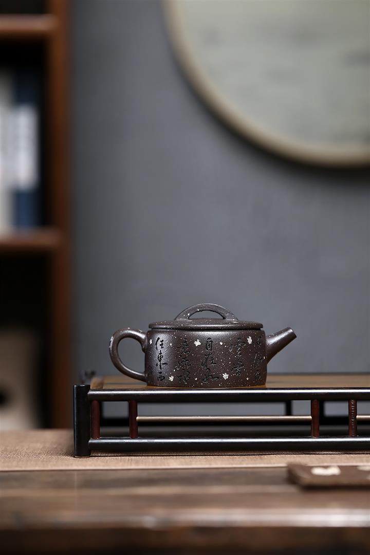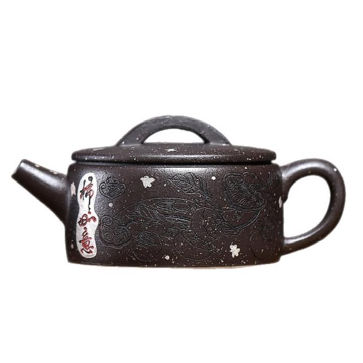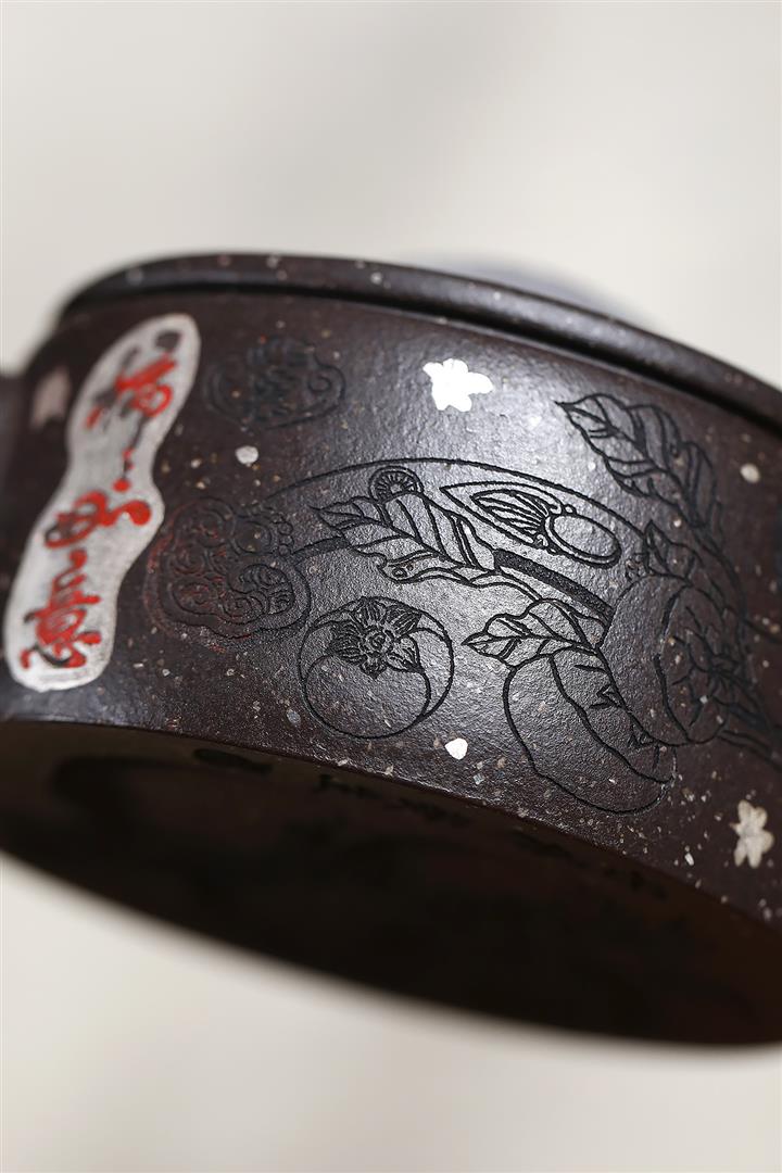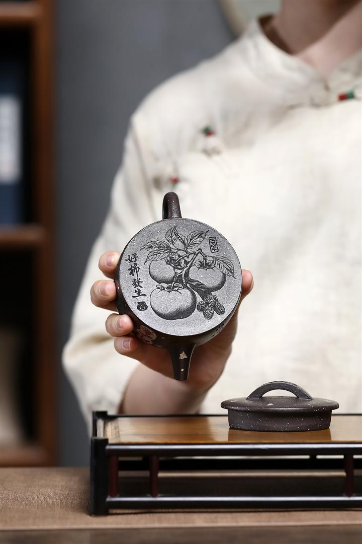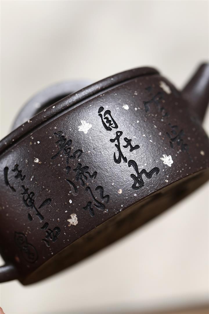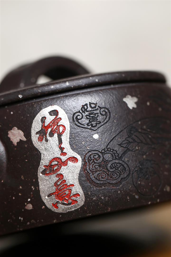 150cc原礦描銀鋪砂雪花紫泥柿柿如意漢瓦茶壺POT9041