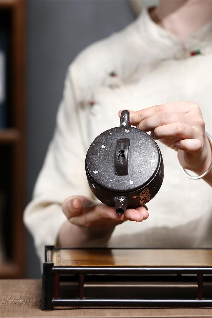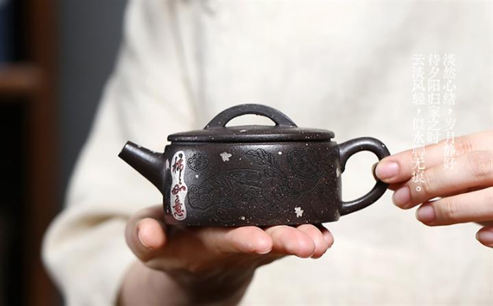 【泥料特點】砂土氣重,似淳實農民,日久使用,漸露鋒芒,養成變化,溫潤莊重。紫砂是壹種雙重氣孔結構的多孔性材質,氣孔微細,密度高。用紫砂壺沏茶,不失原味,且香不渙散,得茶之真香真味。紫砂使用越久,壺身色澤越發光亮照人,氣韻溫雅。紫砂壺長久使用器身會因撫摸擦拭,變得越發溫潤光澤。