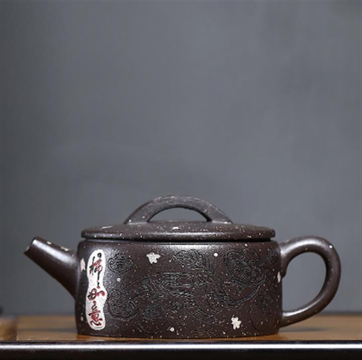320cc原礦紅皮龍刻繪山水秦權泡茶壺POT8411