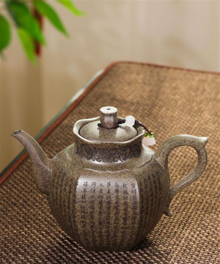 240cc龍窯特高溫段泥心經六方宮燈茶壺POT9045