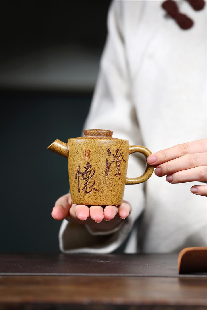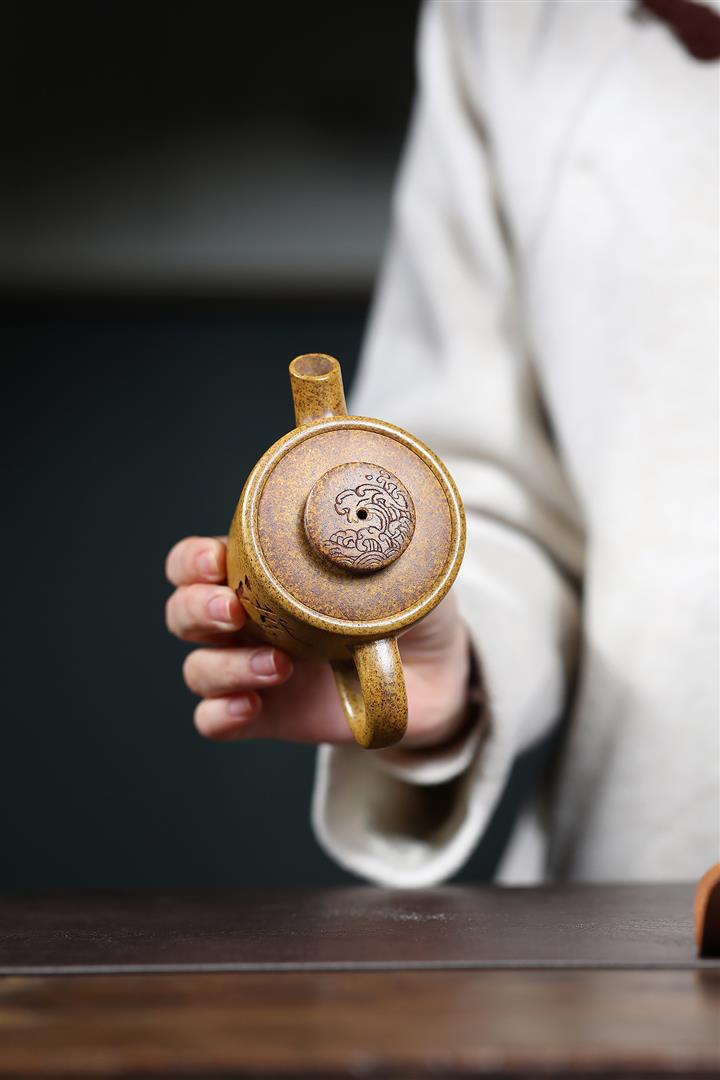【作品介紹】此款壺形線條流暢,壺把,壺嘴,壺身壹氣呵成栩栩如生,是收藏把玩的好壺,泥料色澤古樸典雅,日久使用,漸露鋒芒,養成變化快,溫潤莊重,用其泡茶,使用的年代久,壺身就溫潤,泡出來的茶湯也就醇郁芳馨。