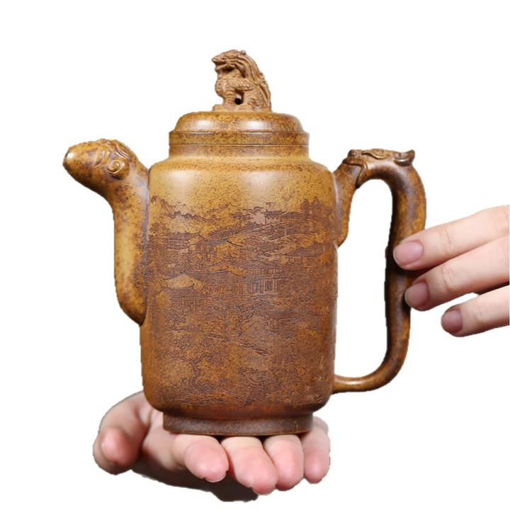 340cc原礦高溫柴燒龍骨金泥汲直茶壺POT9100