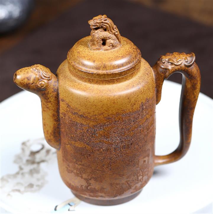 【泥料特點】砂土氣重,似淳實農民,日久使用,漸露鋒芒,養成變化,溫潤莊重。紫砂是壹種雙重氣孔結構的多孔性材質,氣孔微細,密度高。用紫砂壺沏茶,不失原味,且香不渙散,得茶之真香真味。紫砂使用越久,壺身色澤越發光亮照人,氣韻溫雅。紫砂壺長久使用器身會因撫摸擦拭,變得越發溫潤光澤。