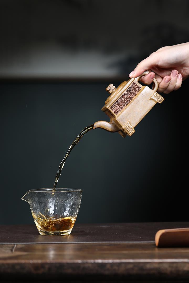 【泥料特點】砂土氣重,似淳實農民,日久使用,漸露鋒芒,養成變化,溫潤莊重。紫砂是壹種雙重氣孔結構的多孔性材質,氣孔微細,密度高。用紫砂壺沏茶,不失原味,且香不渙散,得茶之真香真味。紫砂使用越久,壺身色澤越發光亮照人,氣韻溫雅。紫砂壺長久使用器身會因撫摸擦拭,變得越發溫潤光澤。
