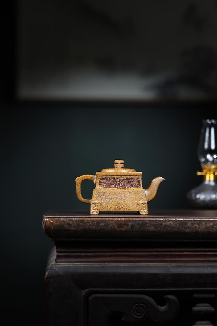 260cc原礦高溫柴燒龍骨金砂四方鼎足茶壺POT9105