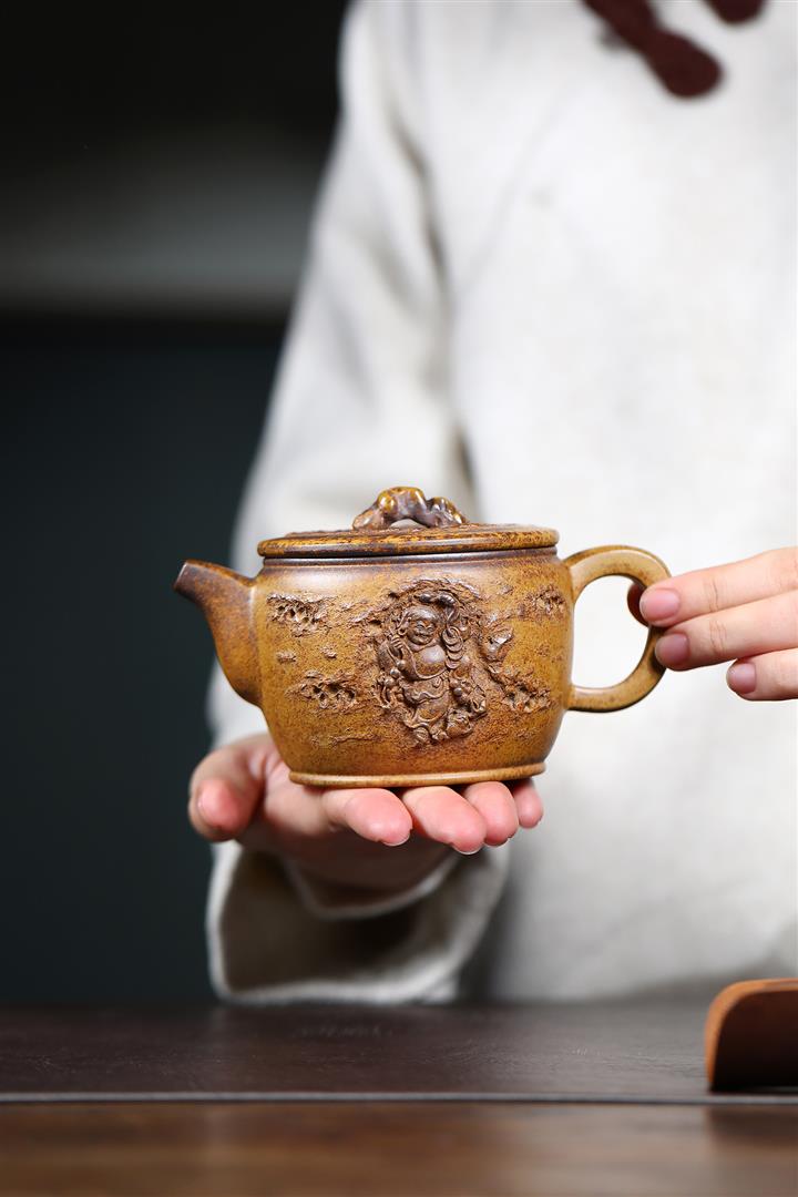原礦豆青泥彩繪漢瓦茶壺POT7877