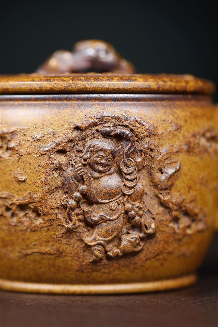 原礦綠泥琢砂竹報平安泡茶壺POT7879