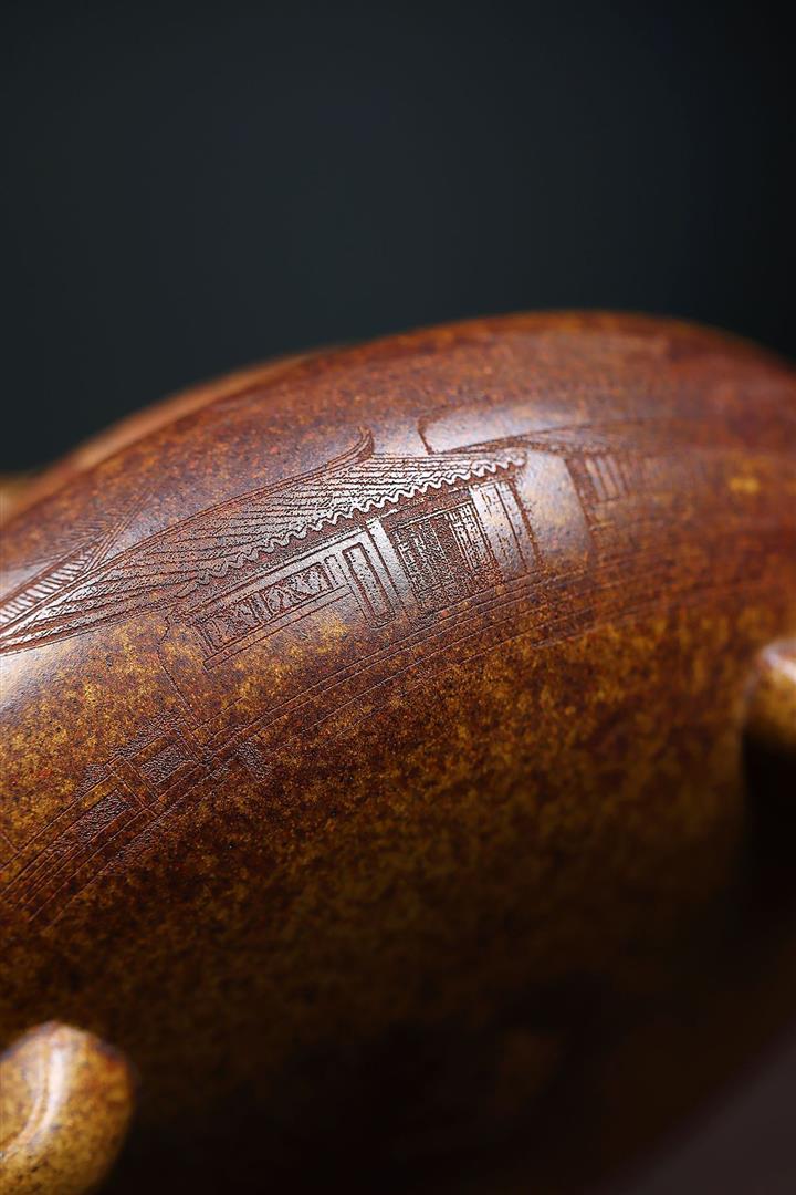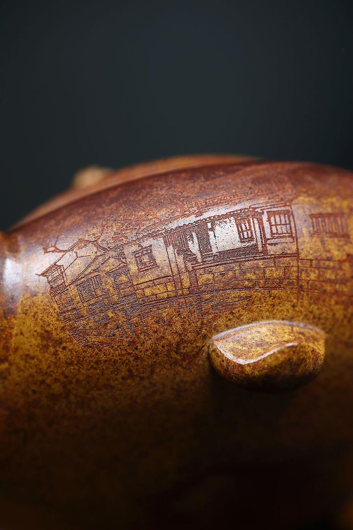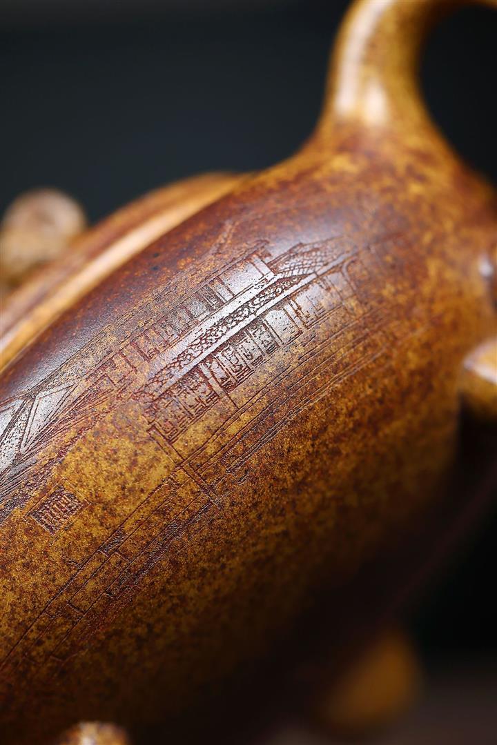 原礦大紅袍手工刻字金潘茶壺POT7120