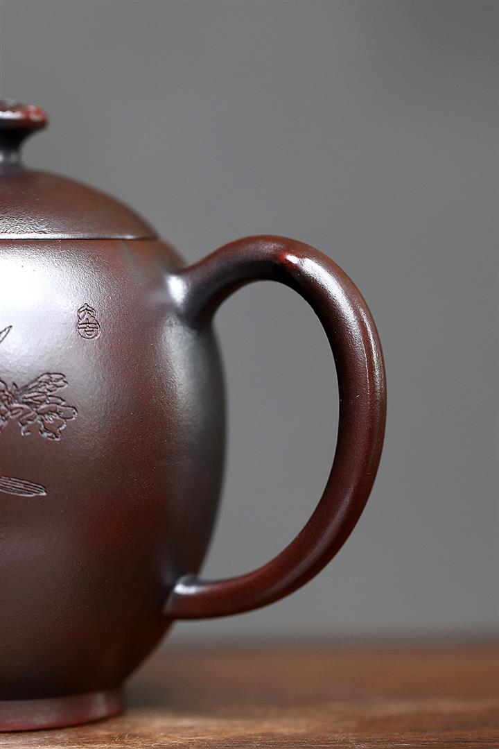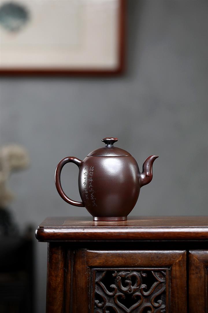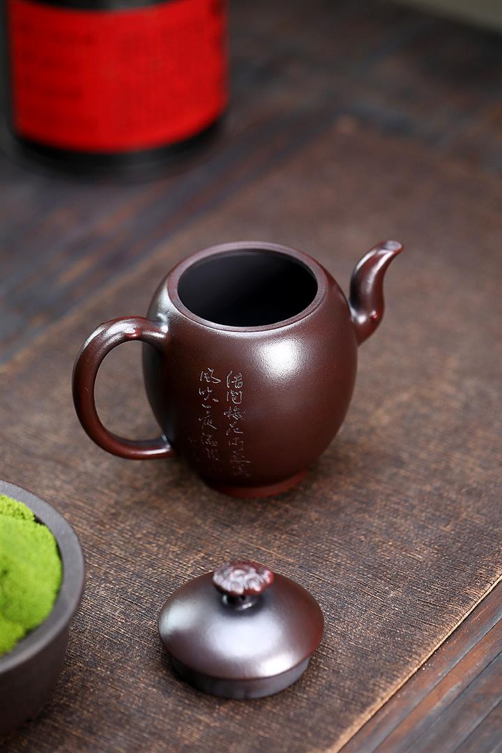 380cc段泥赤焰火雲燒滿刻秦權茶壺POT8202