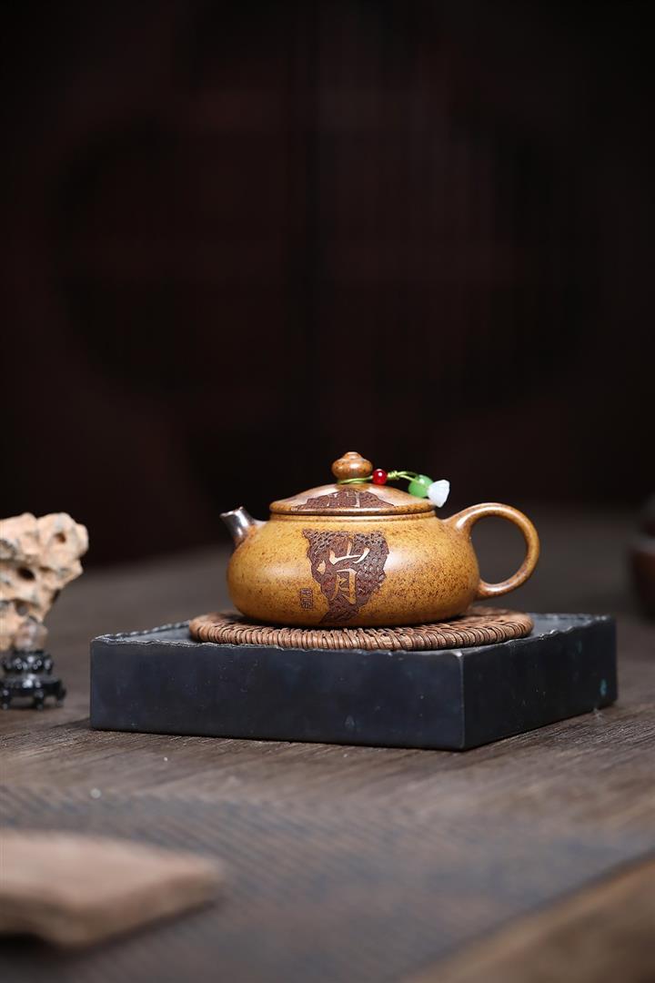 【作品介紹】此款壺形線條流暢,壺把,壺嘴,壺身壹氣呵成栩栩如生,是收藏把玩的好壺,泥料色澤古樸典雅,日久使用,漸露鋒芒,養成變化快,溫潤莊重,用其泡茶,使用的年代久,壺身就溫潤,泡出來的茶湯也就醇郁芳馨。