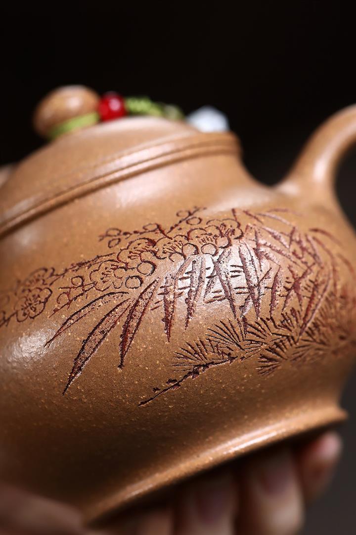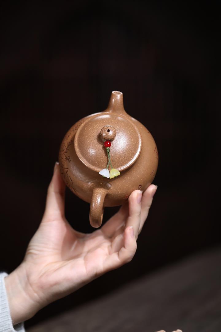 【作品介紹】此款壺形線條流暢,壺把,壺嘴,壺身壹氣呵成栩栩如生,是收藏把玩的好壺,泥料色澤古樸典雅,日久使用,漸露鋒芒,養成變化快,溫潤莊重,用其泡茶,使用的年代久,壺身就溫潤,泡出來的茶湯也就醇郁芳馨。