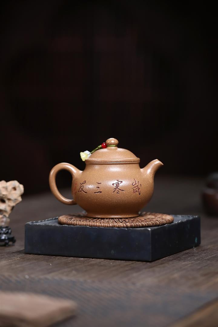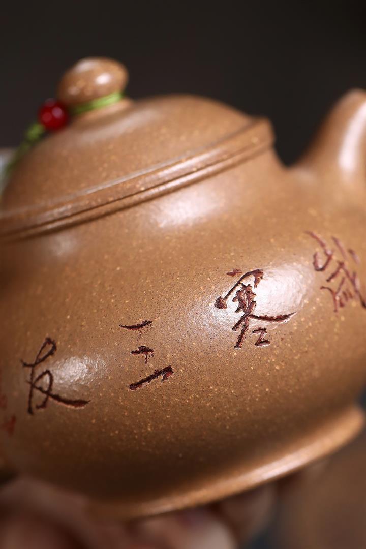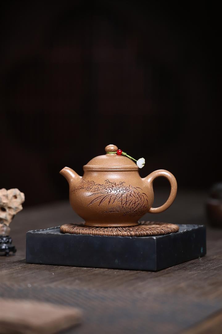 150cc原礦石黃泥幽蘭扁柿茶壺POT8031