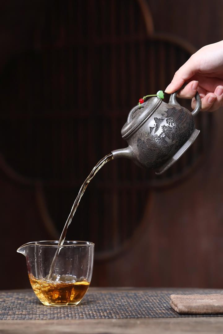 【泥料特點】砂土氣重,似淳實農民,日久使用,漸露鋒芒,養成變化,溫潤莊重。紫砂是壹種雙重氣孔結構的多孔性材質,氣孔微細,密度高。用紫砂壺沏茶,不失原味,且香不渙散,得茶之真香真味。紫砂使用越久,壺身色澤越發光亮照人,氣韻溫雅。紫砂壺長久使用器身會因撫摸擦拭,變得越發溫潤光澤。