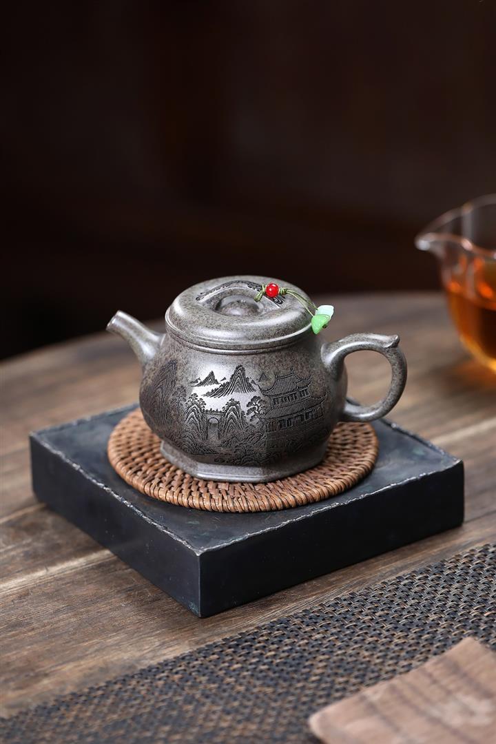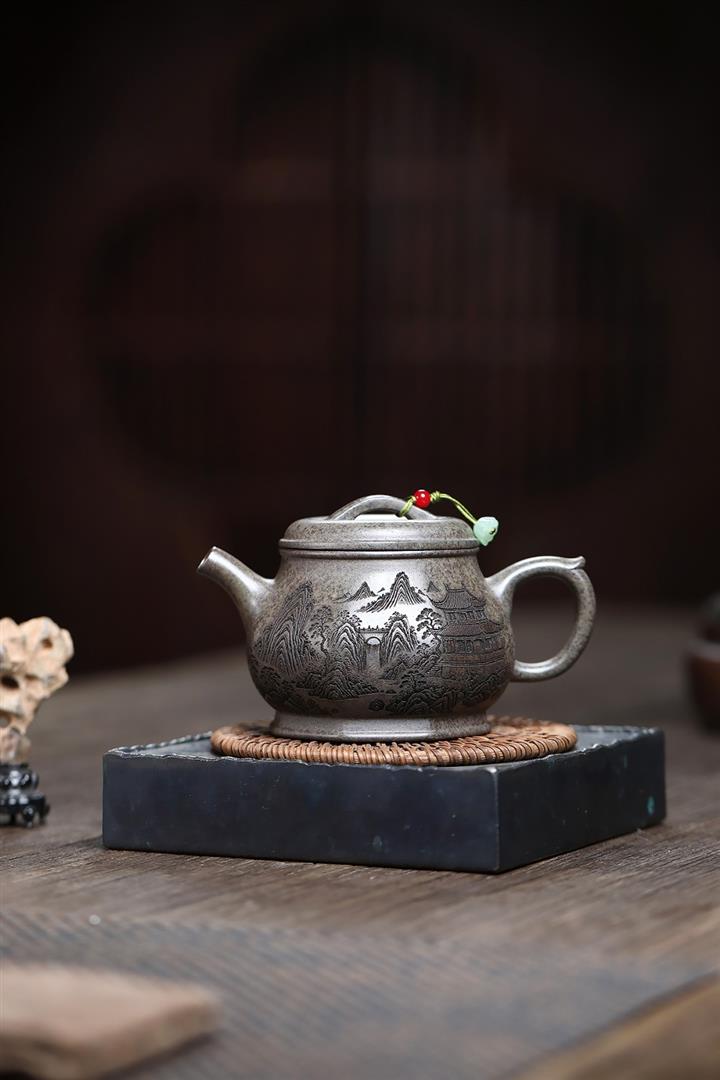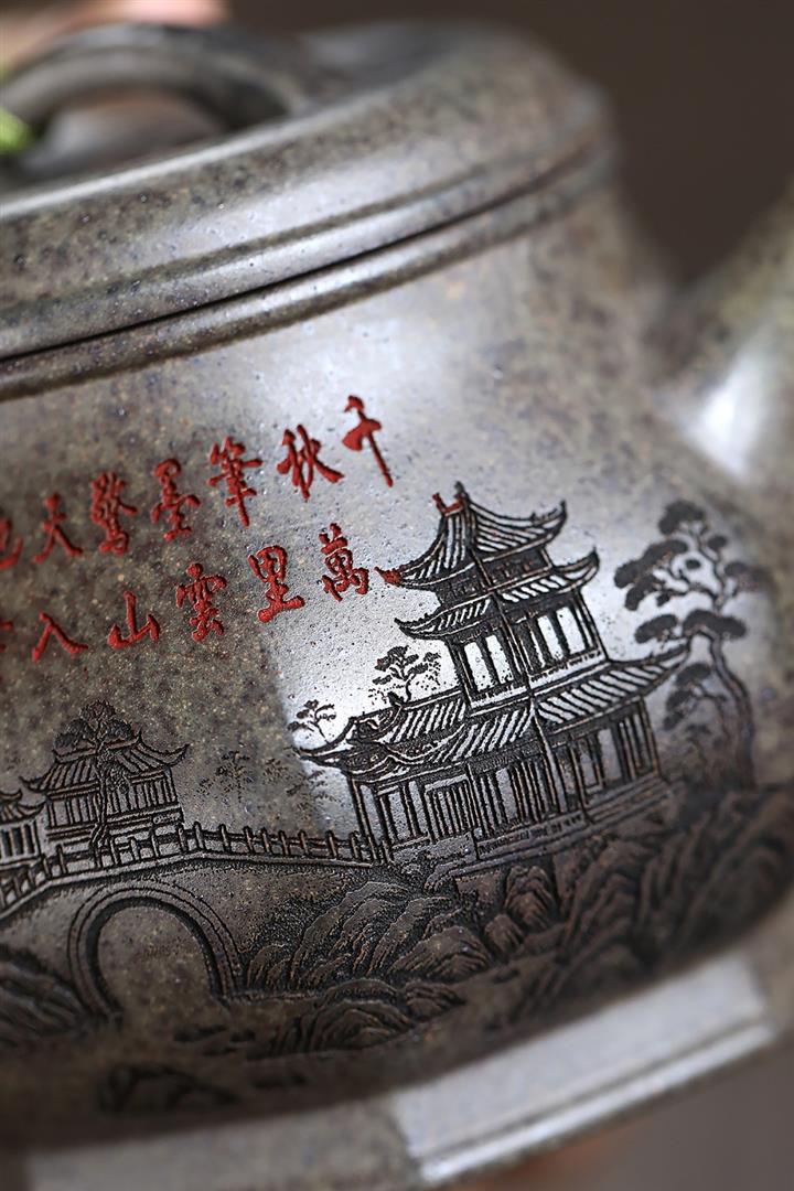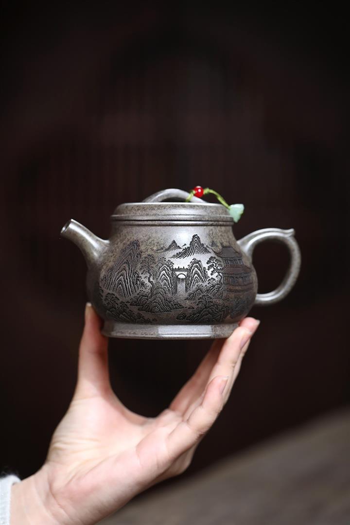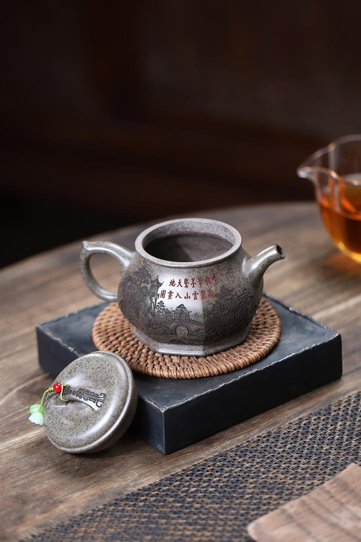 280cc原礦胭脂段柴燒山河頌金茶壺POT9125