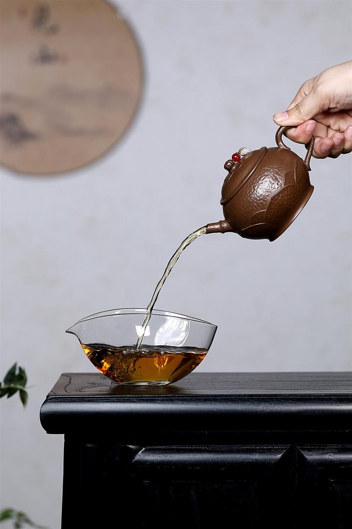 【泥料特點】砂土氣重,似淳實農民,日久使用,漸露鋒芒,養成變化,溫潤莊重。紫砂是壹種雙重氣孔結構的多孔性材質,氣孔微細,密度高。用紫砂壺沏茶,不失原味,且香不渙散,得茶之真香真味。紫砂使用越久,壺身色澤越發光亮照人,氣韻溫雅。紫砂壺長久使用器身會因撫摸擦拭,變得越發溫潤光澤。