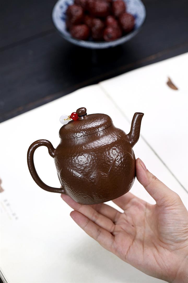 250cc原礦赤金朱泥石紋蓮花泡茶壺POT9127