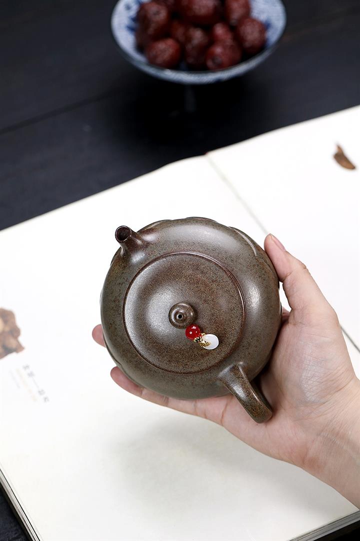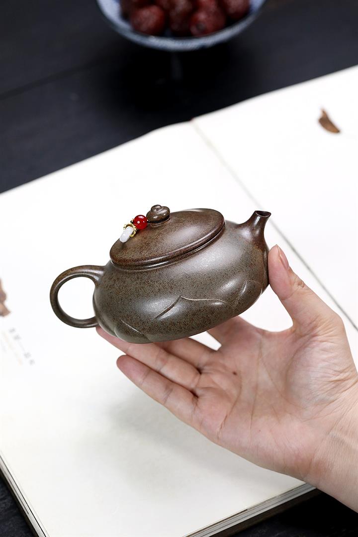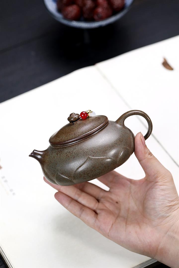 原礦大紅袍手工蓮花汲直茶壺POT6771