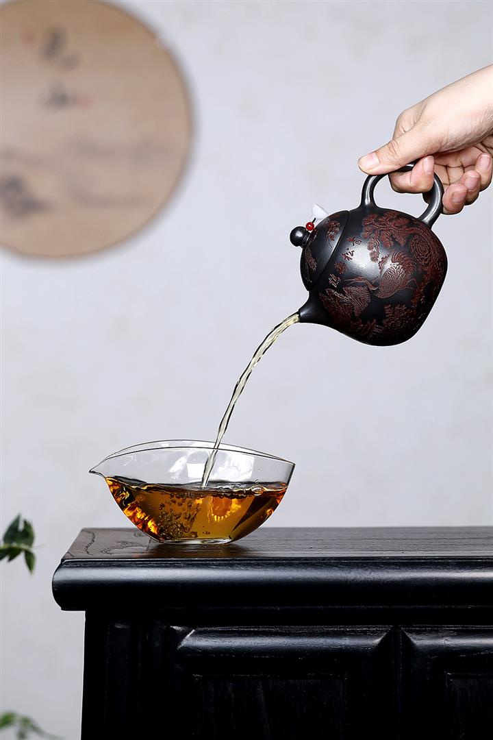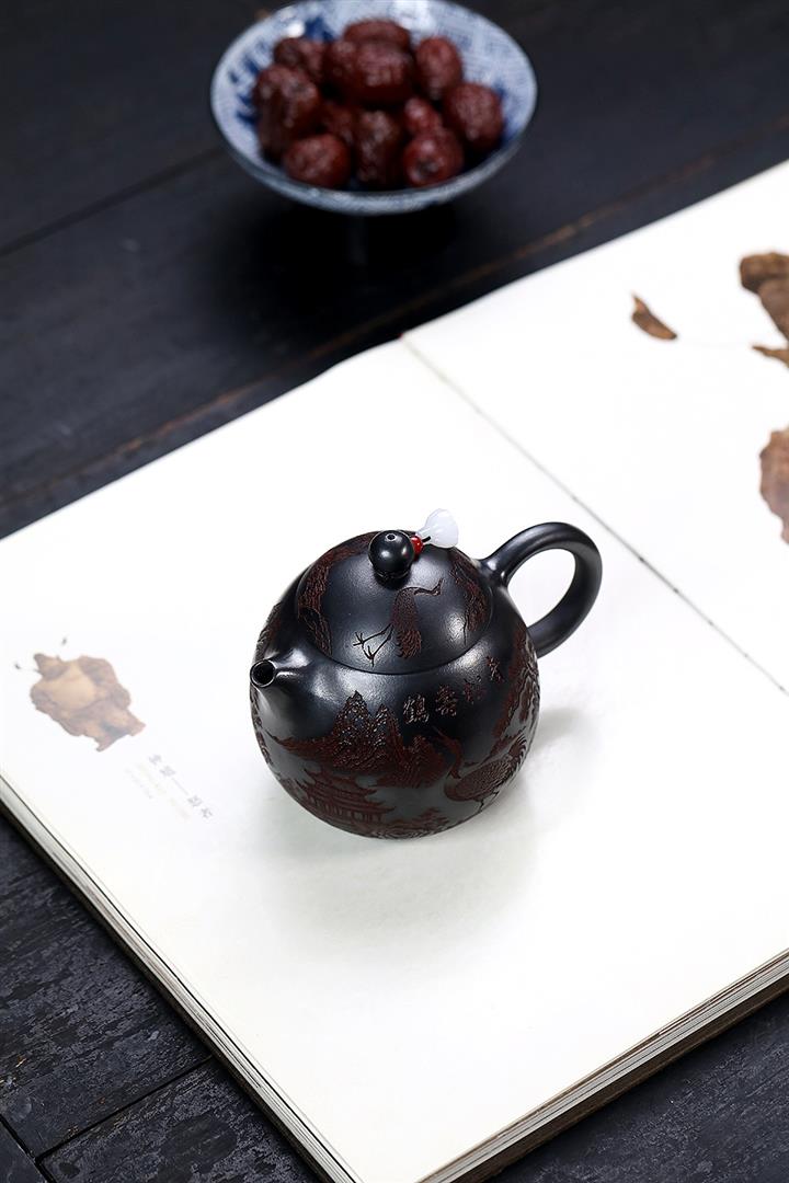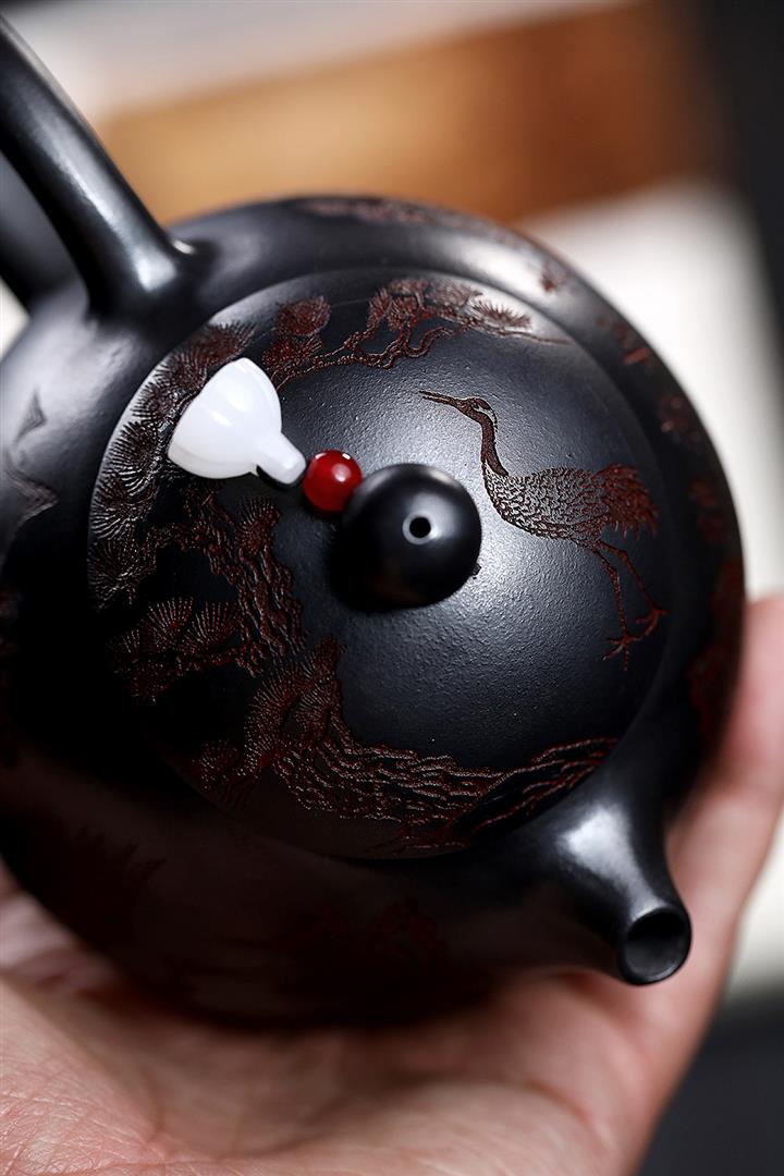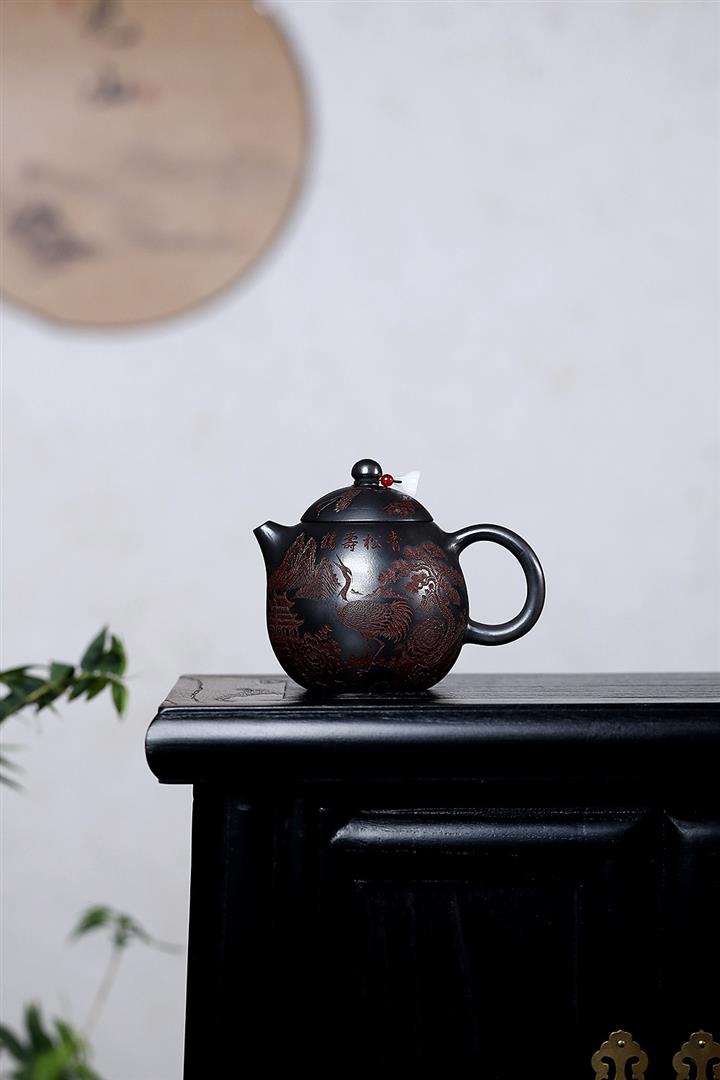 360cc原礦玄鐵石黃松鶴龍蛋泡茶壺POT9136