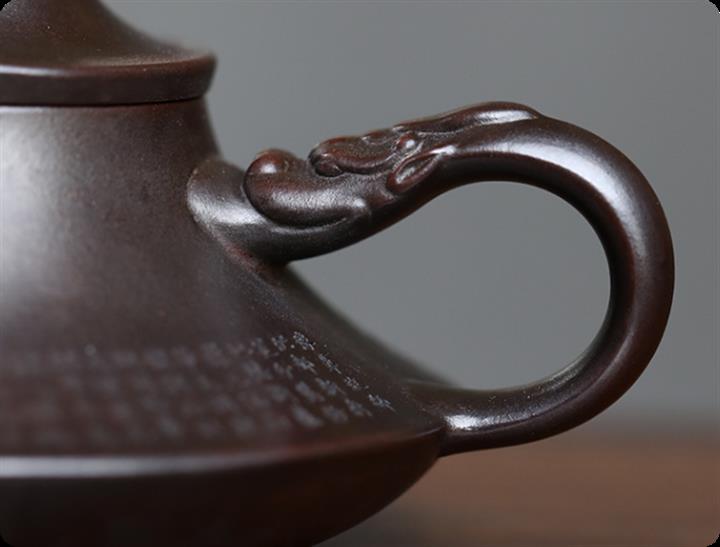 【作品介紹】此款壺形線條流暢,壺把,壺嘴,壺身壹氣呵成栩栩如生,是收藏把玩的好壺,泥料色澤古樸典雅,日久使用,漸露鋒芒,養成變化快,溫潤莊重,用其泡茶,使用的年代久,壺身就溫潤,泡出來的茶湯也就醇郁芳馨。