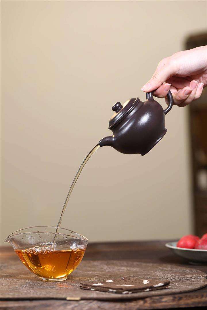 【泥料特點】砂土氣重,似淳實農民,日久使用,漸露鋒芒,養成變化,溫潤莊重。紫砂是壹種雙重氣孔結構的多孔性材質,氣孔微細,密度高。用紫砂壺沏茶,不失原味,且香不渙散,得茶之真香真味。紫砂使用越久,壺身色澤越發光亮照人,氣韻溫雅。紫砂壺長久使用器身會因撫摸擦拭,變得越發溫潤光澤。