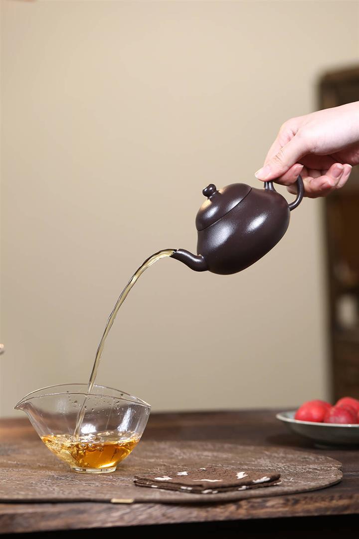 【泥料特點】砂土氣重,似淳實農民,日久使用,漸露鋒芒,養成變化,溫潤莊重。紫砂是壹種雙重氣孔結構的多孔性材質,氣孔微細,密度高。用紫砂壺沏茶,不失原味,且香不渙散,得茶之真香真味。紫砂使用越久,壺身色澤越發光亮照人,氣韻溫雅。紫砂壺長久使用器身會因撫摸擦拭,變得越發溫潤光澤。