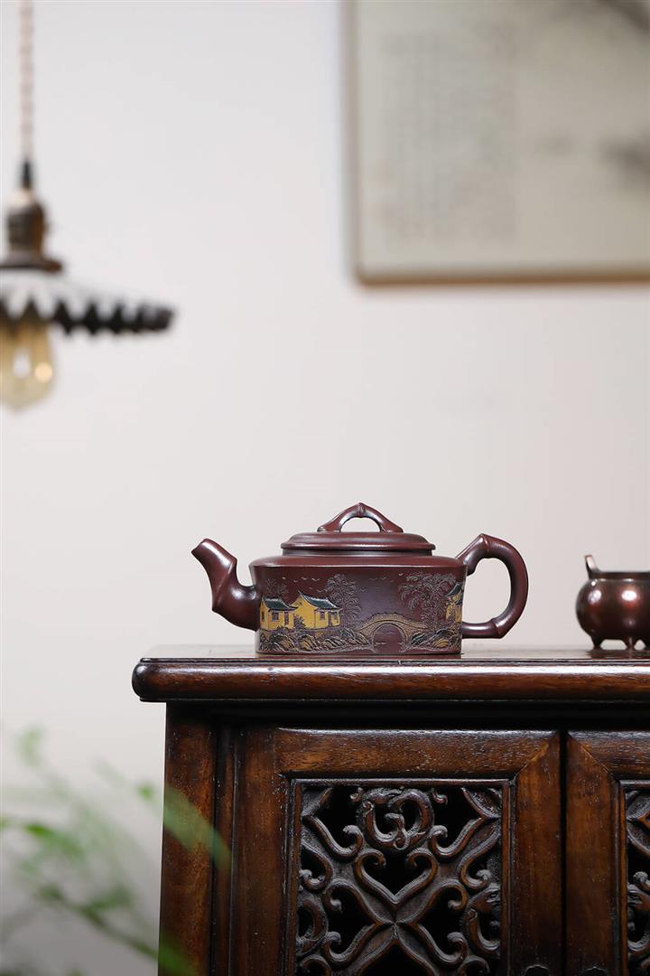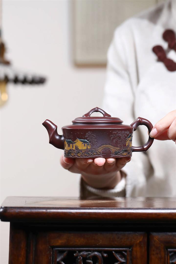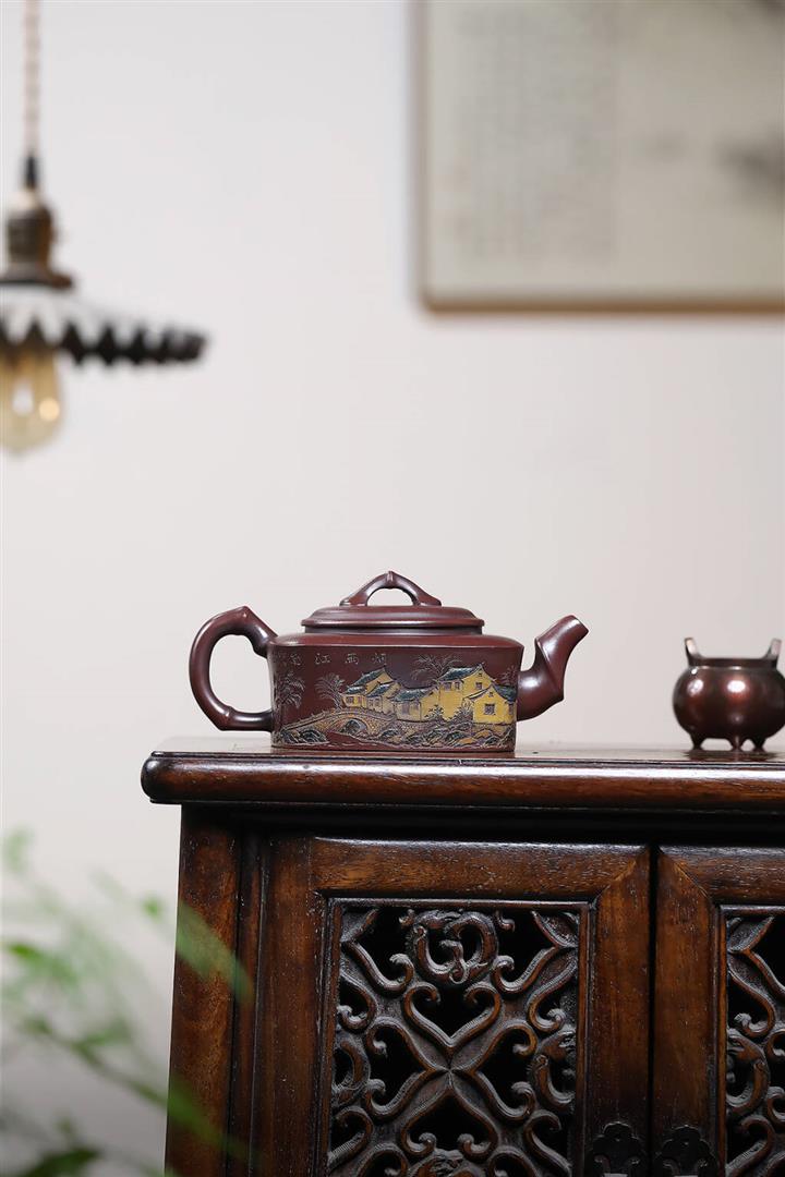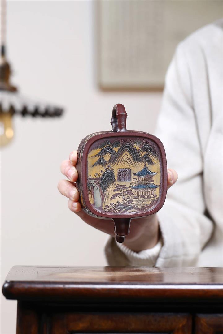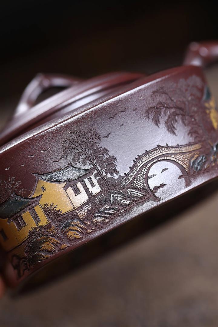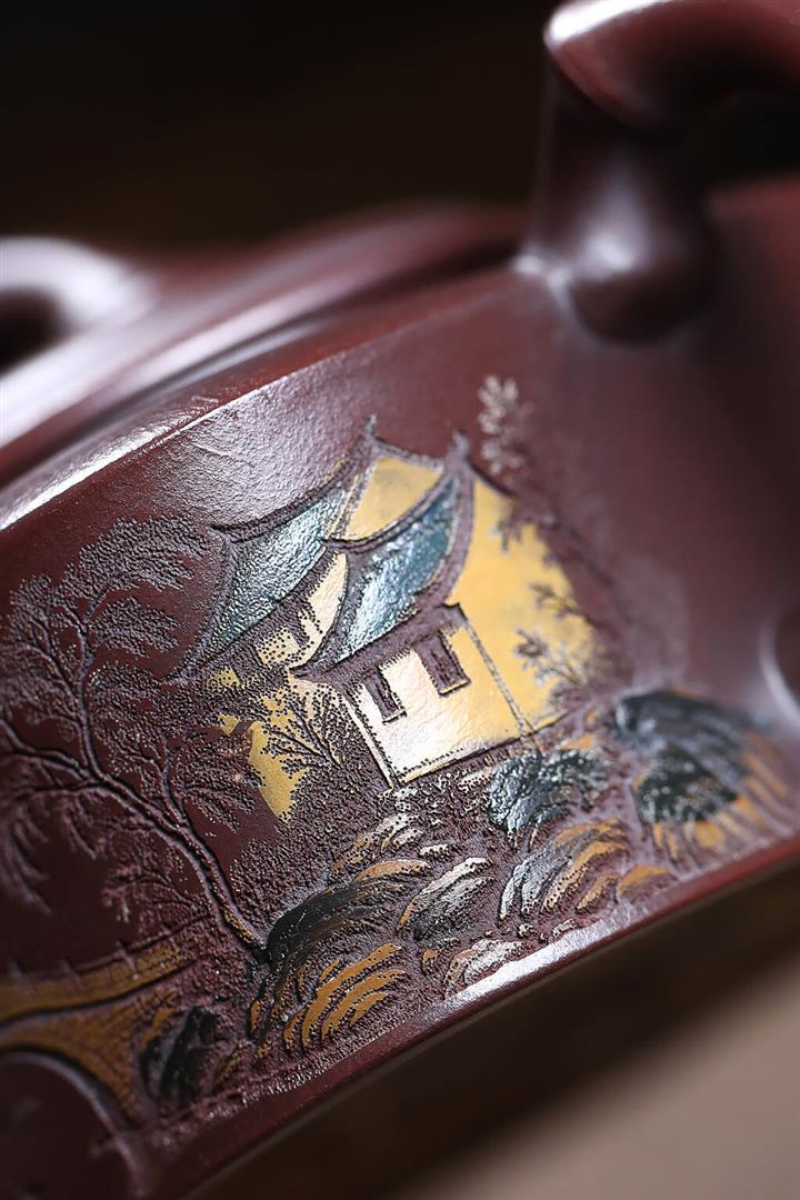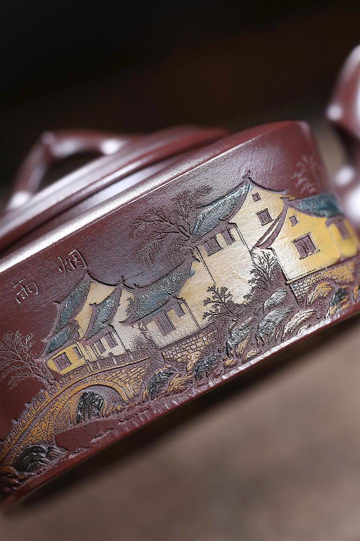 原礦大紅袍刻繪漁翁掇球壺POT6978