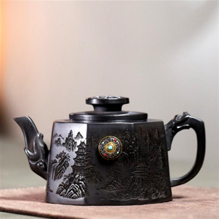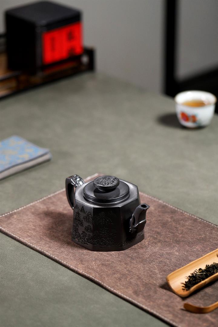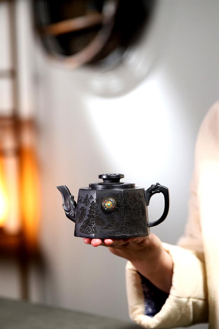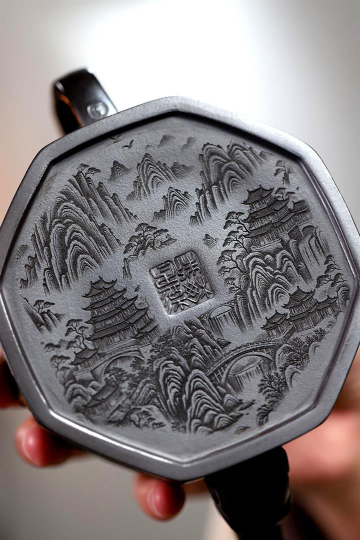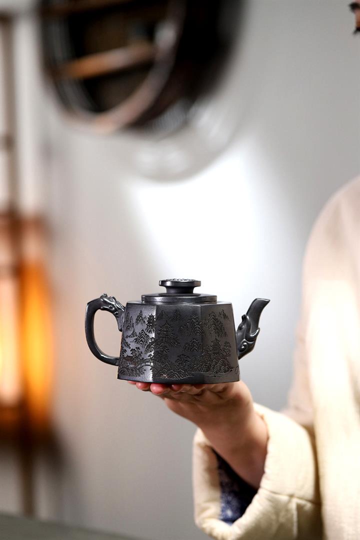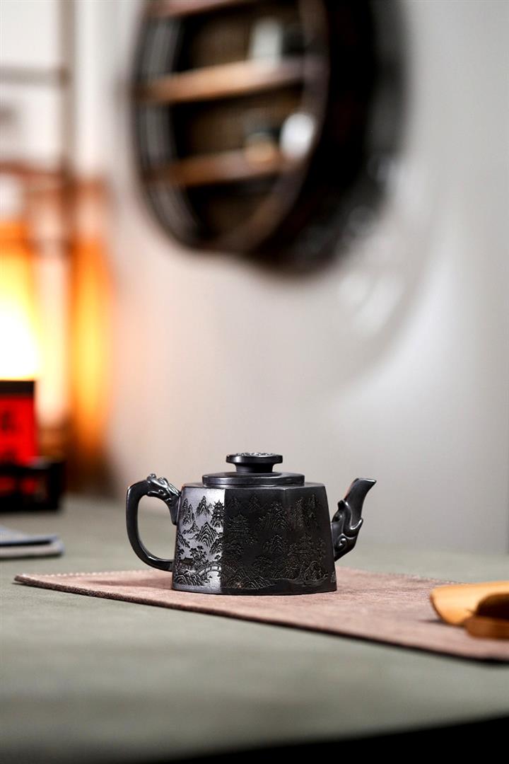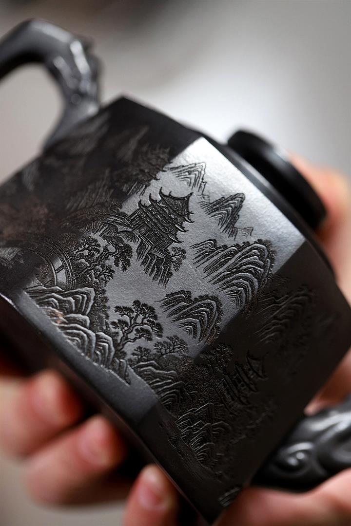 原礦紫泥刻繪山水德鐘茶壺POT7787