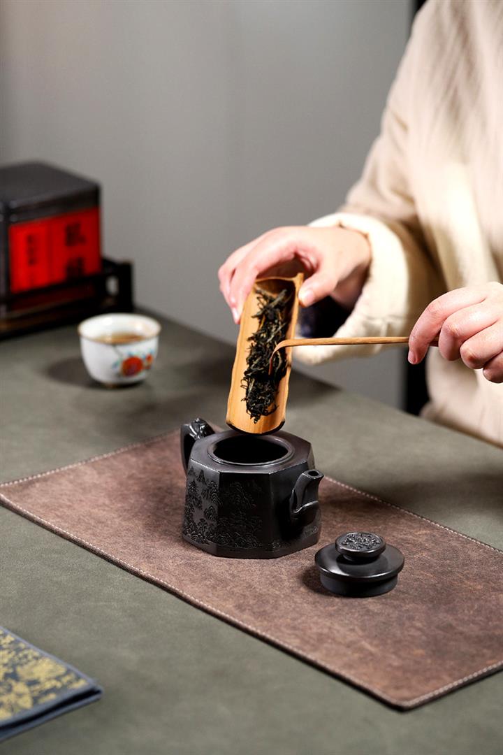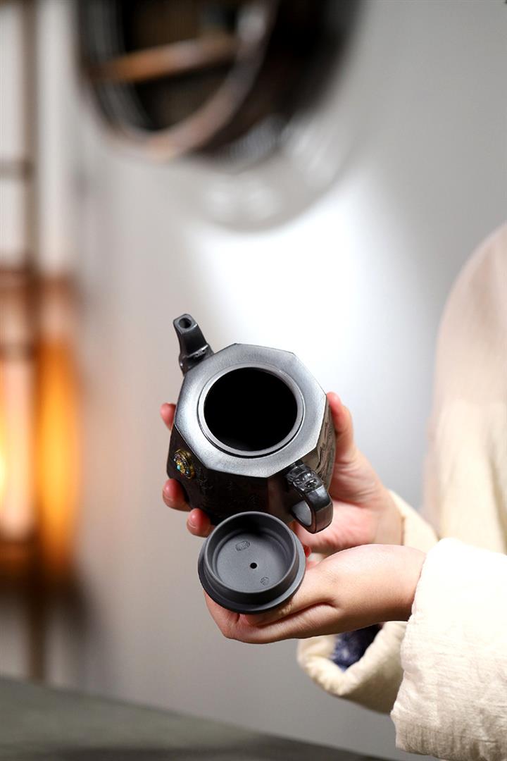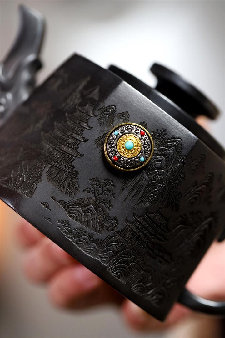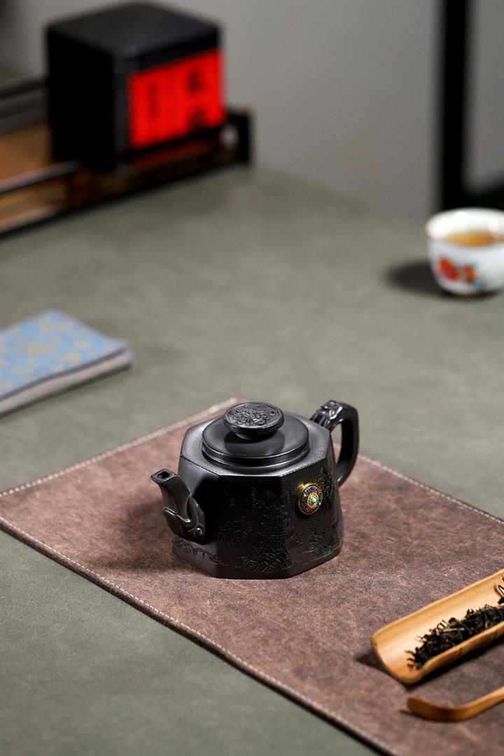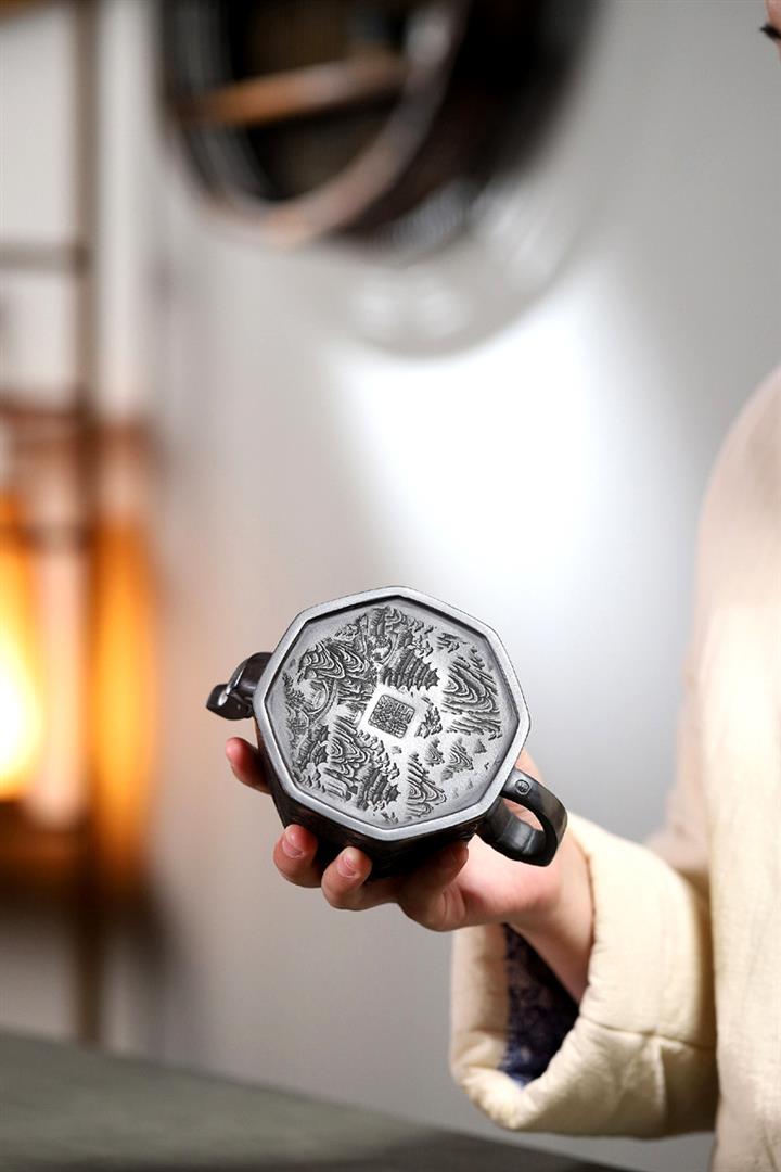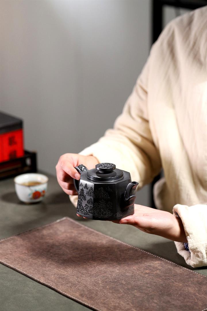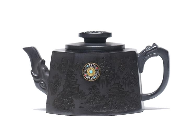 原礦紫泥刻繪山水德鐘茶壺POT7787